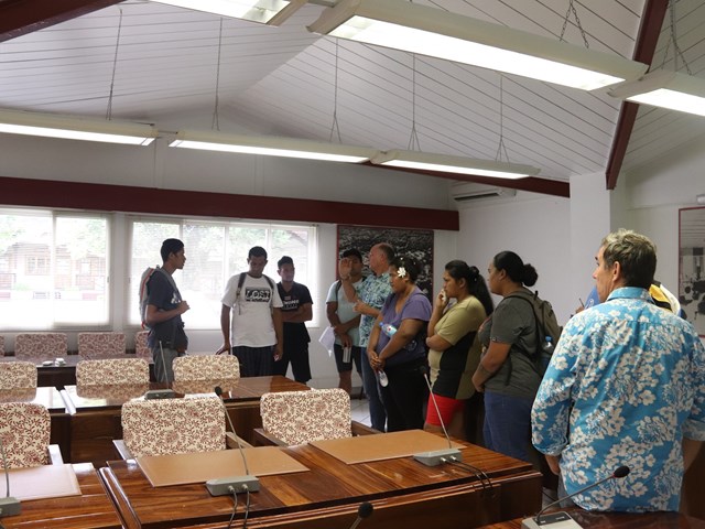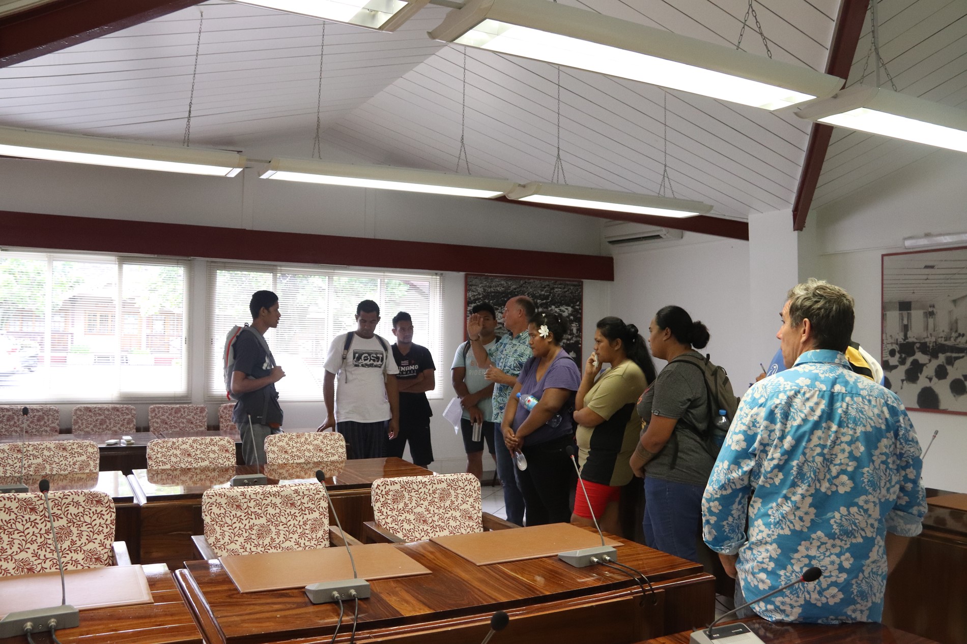 Cette visite a été l’occasion pour eux de découvrir l’assemblée de la Polynésie française au travers de chacune des salles, en commençant par le hall René LEBOUCHER, où ils ont pu prendre connaissance du nombre de présidents de l’assemblée ainsi que des noms des 57 représentants. Ils se sont ensuite rendu dans la salle Sonia AGNIERAY-THUNOT dans laquelle se déroulent les commissions législatives. La visite s’est achevée dans l’hémicycle où ils ont pu écouter l’histoire des lieux, la signification des symboles qui ornent les murs de la salle et connaître le rôle des élus.
