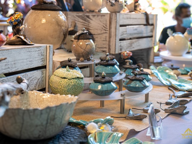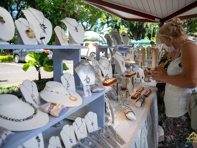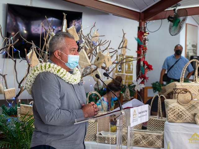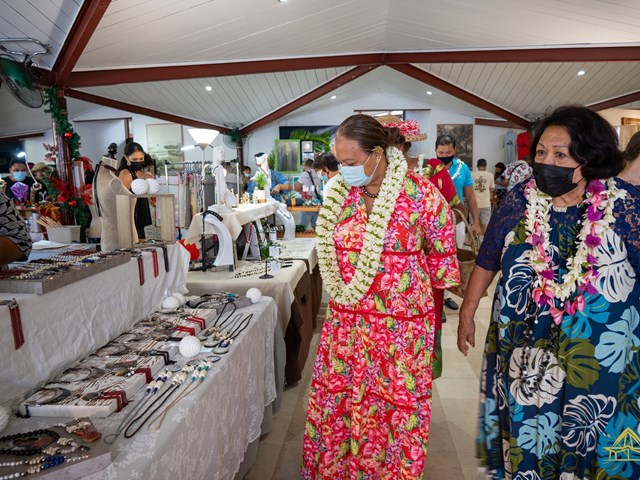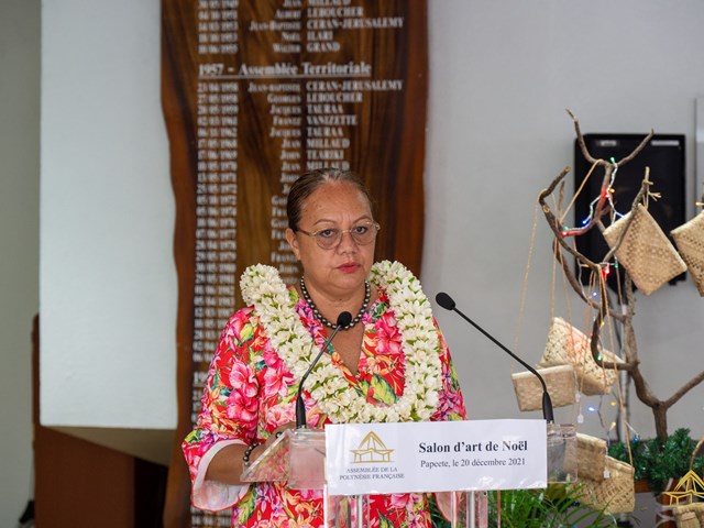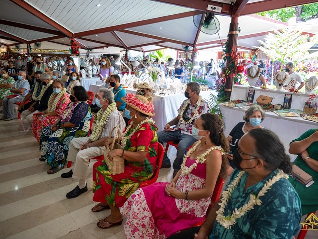 Dans son discours, Mme Sylvana PUHETINI, a fait part de sa joie de revoir le hall René LEBOUCHER accueillir les exposants d’art traditionnel qui sont une trentaine à proposer leurs créations notamment dans le domaine de la bijouterie (nacre, perles, coquillages, graines...), de la couture, de la sculpture sur bois et pierre, de la vannerie, de la poterie, sans oublier les objets de décoration comme les lampes, photophores, etc.