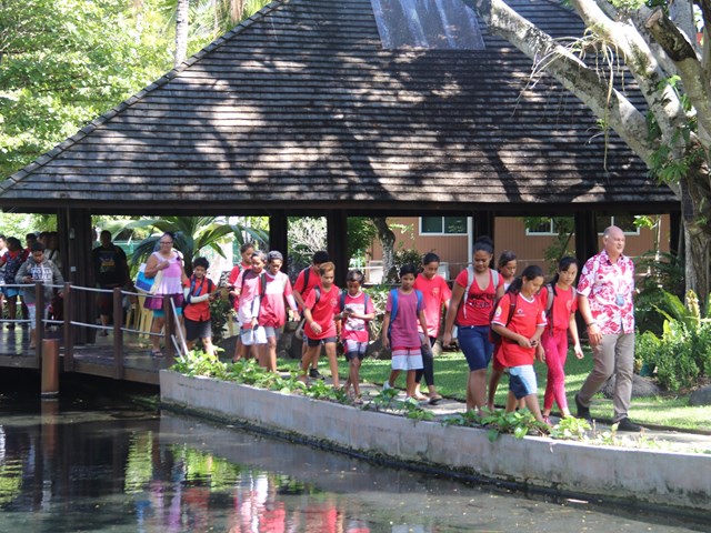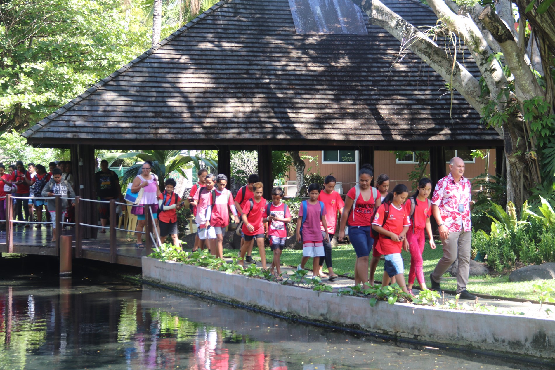 Les élèves et leurs accompagnateurs ont débuté leur visite de l’assemblée de la Polynésie française par un passage dans le hall René LEBOUCHER. Ils ont ensuite été conduits dans la salle Sonia AGNIERAY-THUNOT, une des salles dédiées aux réunions législatives avant de visiter l’hémicycle Vetea BAMBRIDGE où se tiennent les séances plénières de l’assemblée de l’institution. Les jeunes visiteurs se sont ensuite rendus dans les jardins de Taraho’i où ils ont pu découvrir le bassin de la Reine. Très intéressés par cette visite, ils n’ont pas manqué d’interroger le guide de l’assemblée sur l’histoire de ce lieu et le fonctionnement de l’institution.