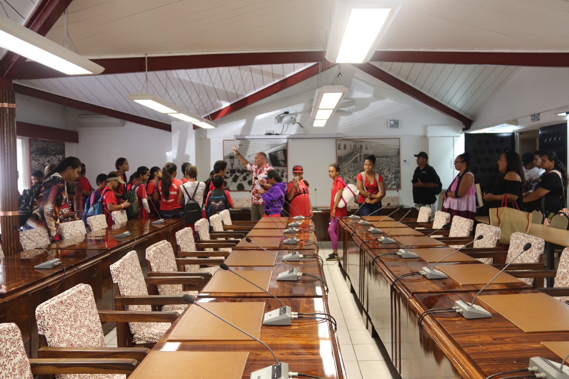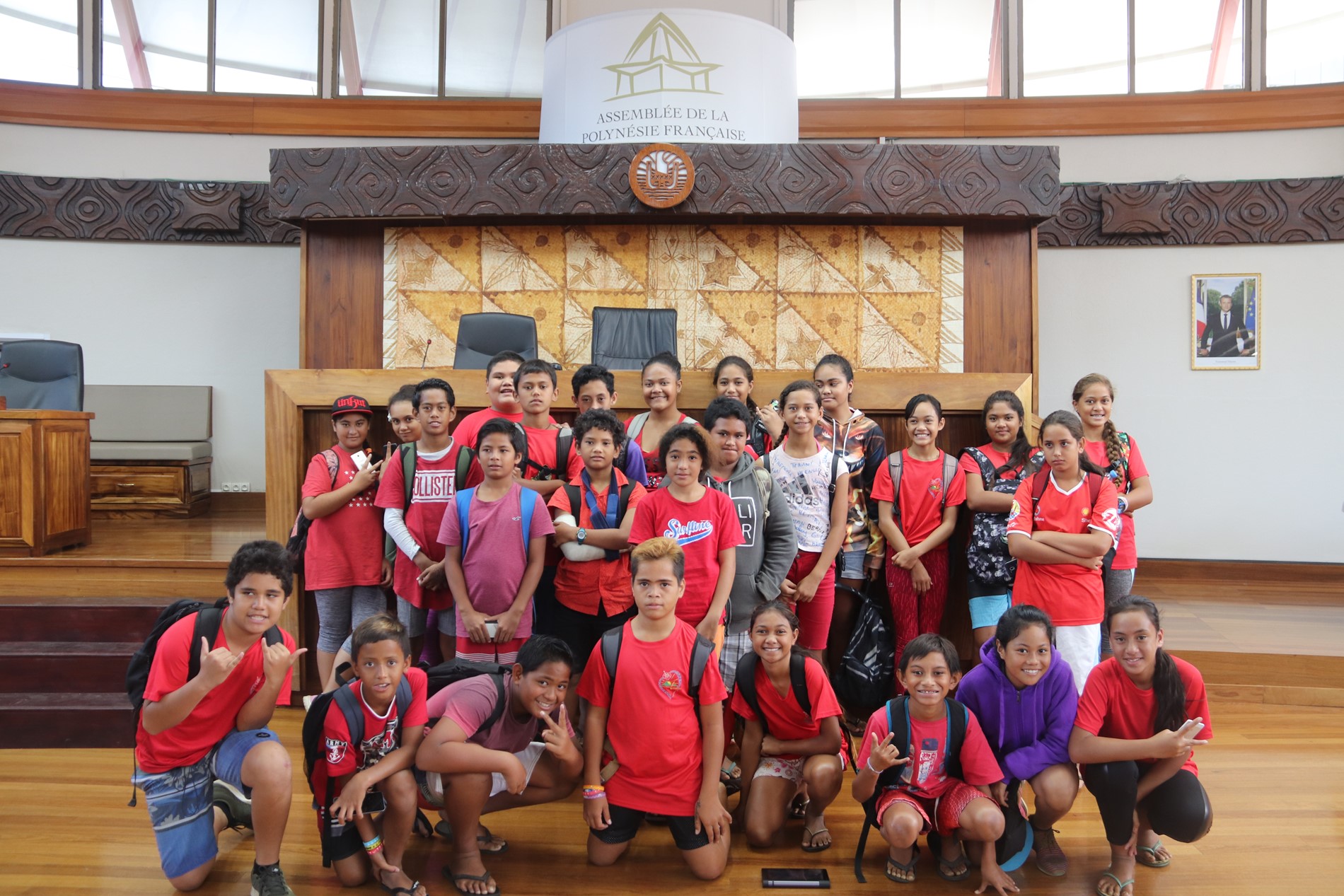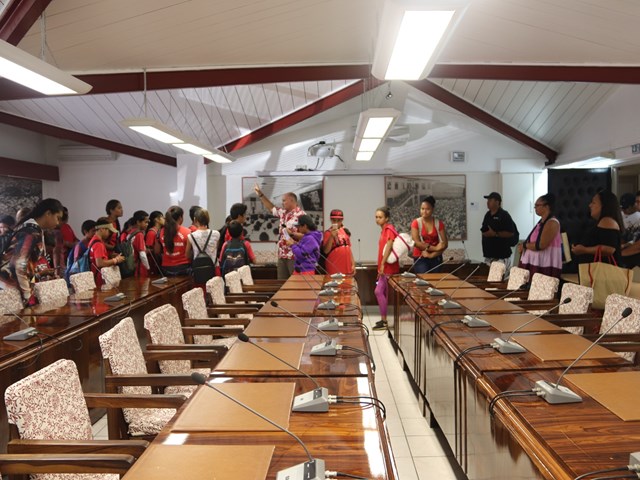 Mardi 15 octobre 2019, 26 élèves de sixième du Collège Sacré Cœur de Taravao, accompagnés de Mᵐᵉ Laurence LEBOUCHER, professeur d’histoire-géographie, de 2 accompagnateurs et de 3 parents d’élèves, ont visité l’assemblée de la Polynésie française.