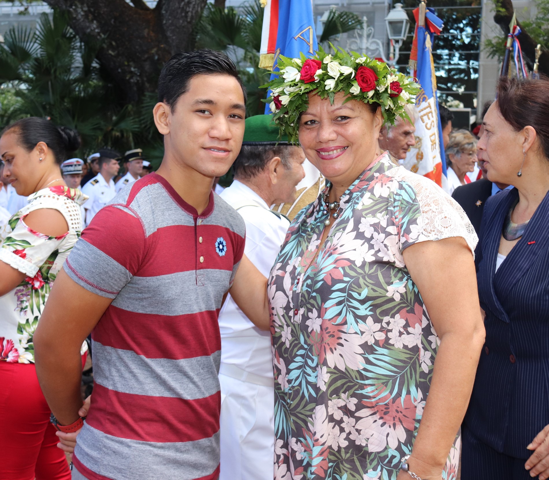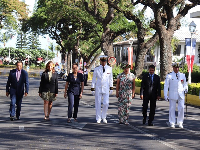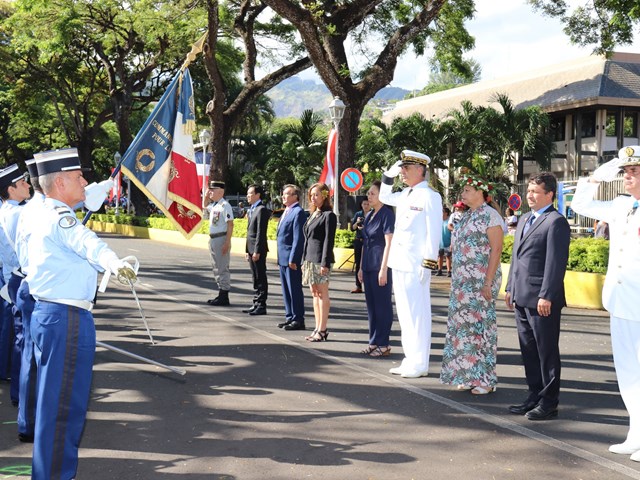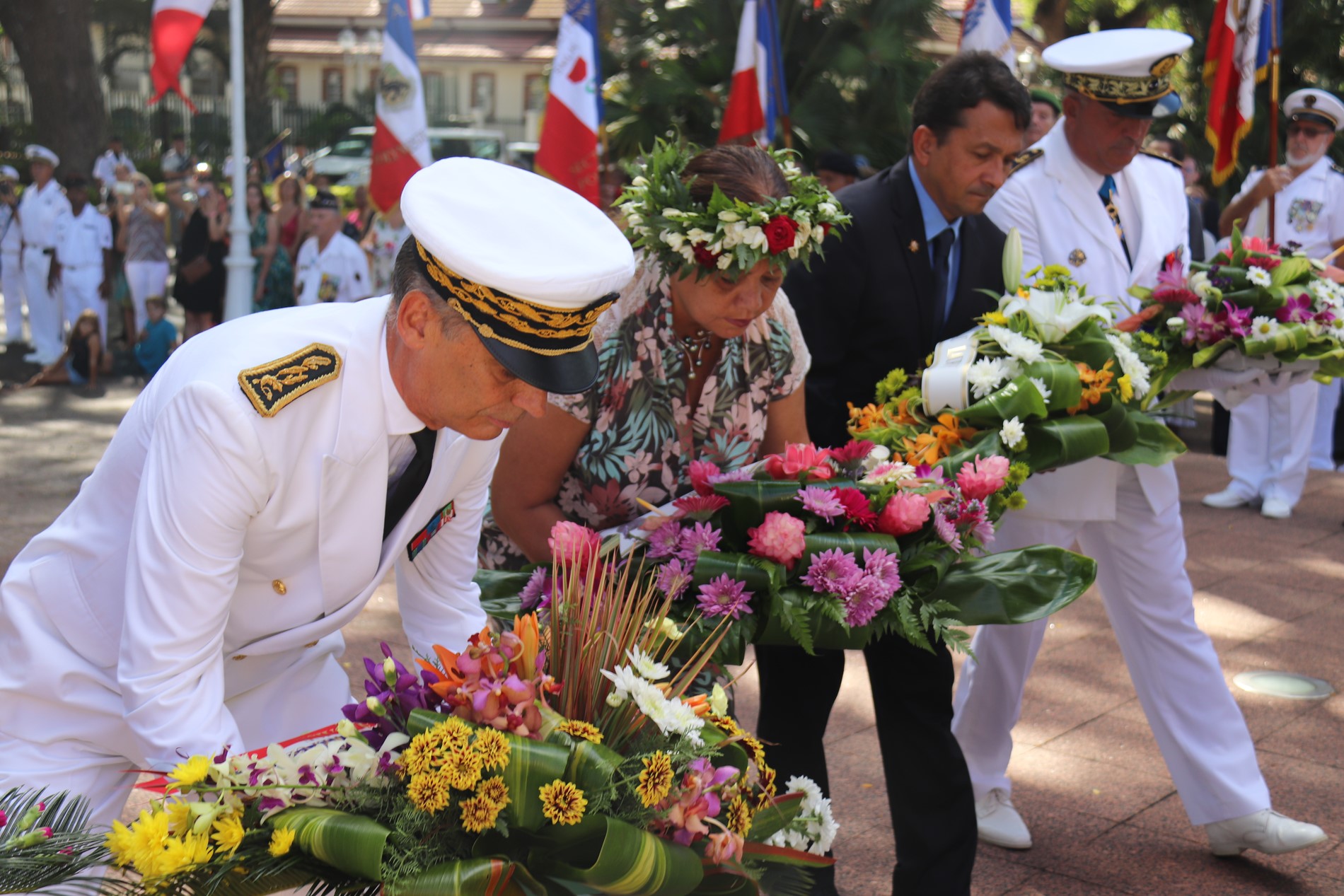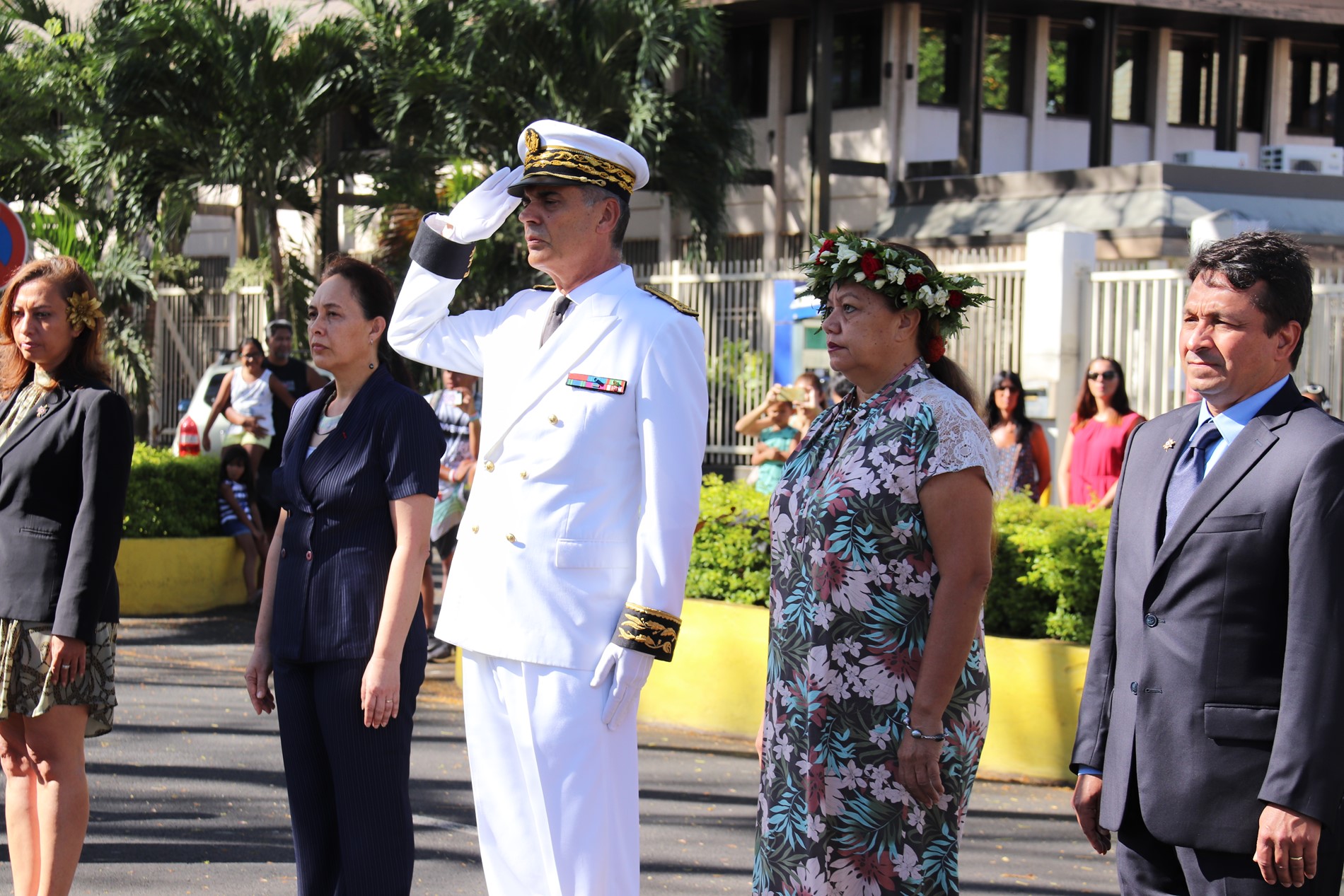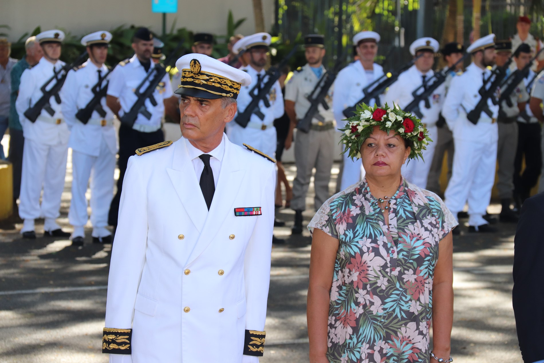 Cette cérémonie, empreinte d’une grande solennité et d’une émotion palpable était présidée par M. Dominique SORAIN, haut-commissaire de la République en Polynésie française et s’est tenue en présence de Mme Tea FROGIER, ministre de la modernisation de l’administration, représentant le Président de la Polynésie française, de Mme et M. les parlementaires et représentants Nicole SANQUER et Nuihau LAUREY, de M. Michel BUILLARD, Maire de Papeete et représentant à l’assemblée, du Contre-Amiral Laurent LEBRETON, commandant supérieur des forces armées en Polynésie française, de M. Kelly ASIN-MOUX, président du conseil économique, social, environnemental et culturel de la Polynésie française et de nombreux anciens combattants, soldats, militaires, citoyens, jeunes et moins jeunes, tous venus honorer le devoir de mémoire et d’hommage à celles et ceux qui se sont battus pour le monde libre.