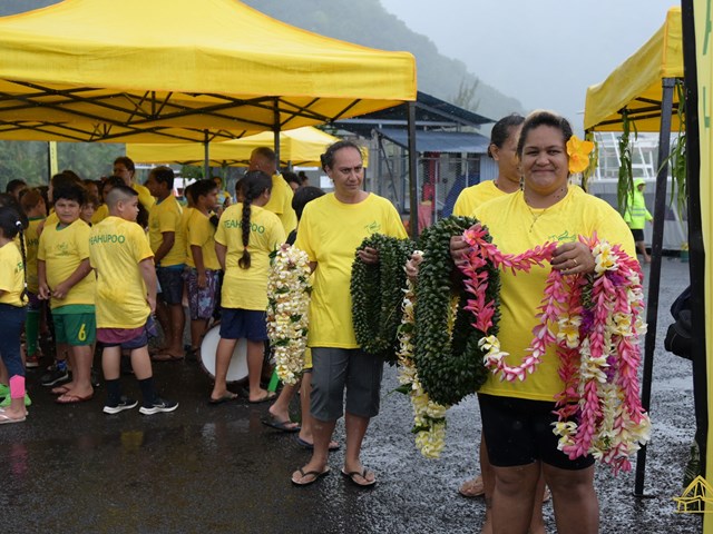 The parliamentarians and administrative staff from the Cook Islands, Palau, New Zealand, New Caledonia, Solomon Islands, Tonga and Wallis and Futuna received a warm welcome at the Teahupoo marina from Mrs. Roniu Poareu, Deputy Mayor of Teahupoo, Mr. Jonathan Tarihaa, Deputy Mayor of Teahupoo, and Mr. Roniu Poareu. Jonathan Tarihaa, Deputy Mayor of Vairao alongside of members of the West Taiarapu Municipal Council and young students from Ahototeina Primary School in Teahupoo, who sang an emblematic and touching song from the munucipality.