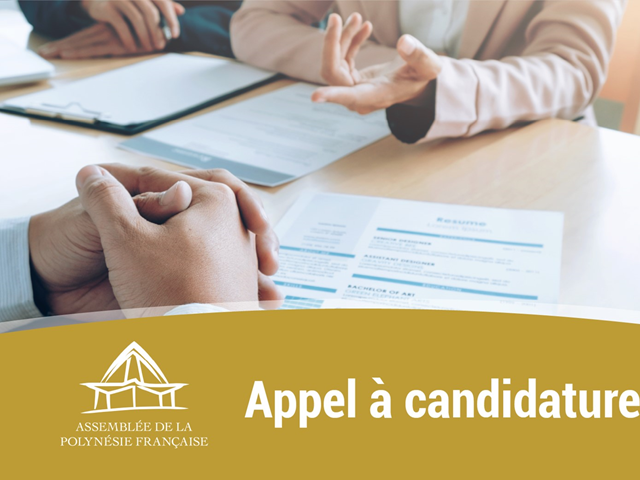 Pour candidater, il suffit d’envoyer une lettre de motivation adressée au président de l’assemblée de la Polynésie française et un CV, par courriel à l’adresse suivante : cellule_rh@assemblee.pf avant le 16 juillet 2021.