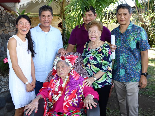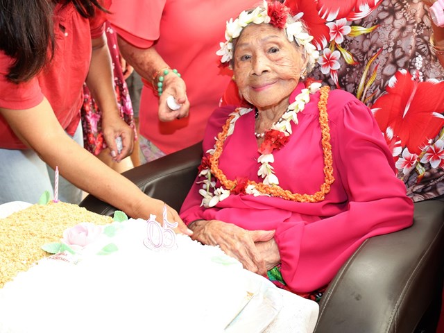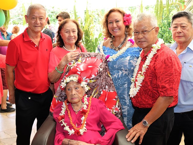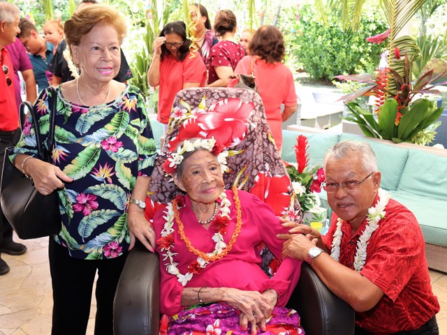 Le 105ème anniversaire de Marthe SUARD, doyenne des Polynésiens, célébré en présence du président de l’assemblée