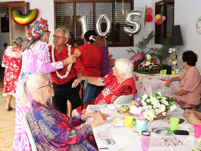 M. Gaston TONG SANG s’est rendu aujourd’hui, à la mi-journée, à la résidence pour personnes âgées « Les orchidées », sise à Papeete, afin de célébrer, avec sa grande famille et ses nombreux amis, le 105ème anniversaire de Mme Marthe TANSEAU veuve SUARD.