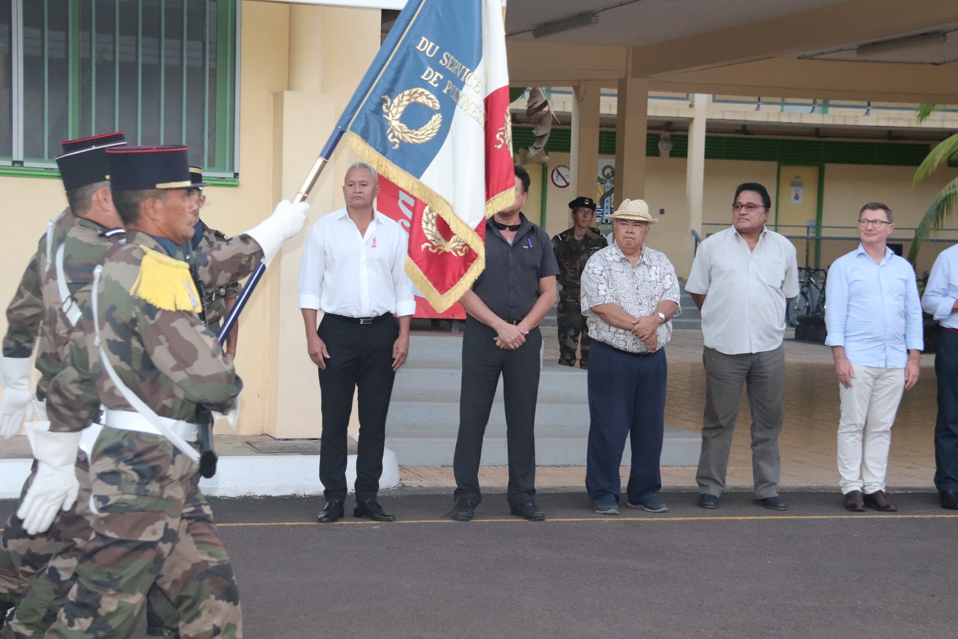 Jeudi 24 octobre 2019 à 17h00, M. Frédéric RIVETA, 3ème vice-président de l’assemblée de la Polynésie française, a participé, aux côtés de M. Patrick MAI, représentant le vice-président de la Polynésie française, de M. Raymond TERIITAUMIHAU, chef de cabinet de Mme Christelle LEHARTEL, ministre de l’éducation, de la jeunesse et des sports, de M. Makalio FOLITUU, vice-président du Conseil économique social et culturel de la Polynésie française, à la cérémonie de présentation au drapeau des jeunes volontaires stagiaires du Régiment du service militaire adapté de Polynésie française (RSMA-PF) issus des promotions du mois d’octobre 2019.