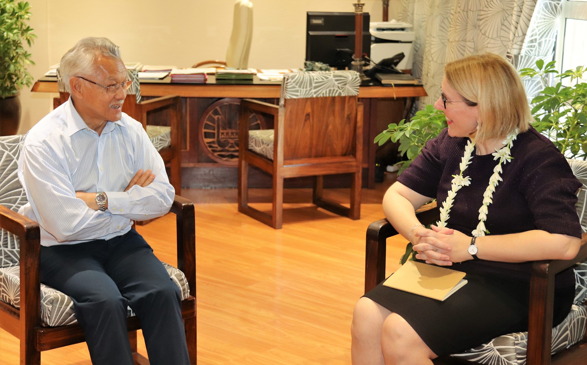 Consule générale d’Australie pour la Polynésie française basée en Nouvelle Calédonie et nommée le 20 août dernier, Mme Alison CARRINGTON a été reçue en fin de matinée par le président de l’assemblée de la Polynésie française.