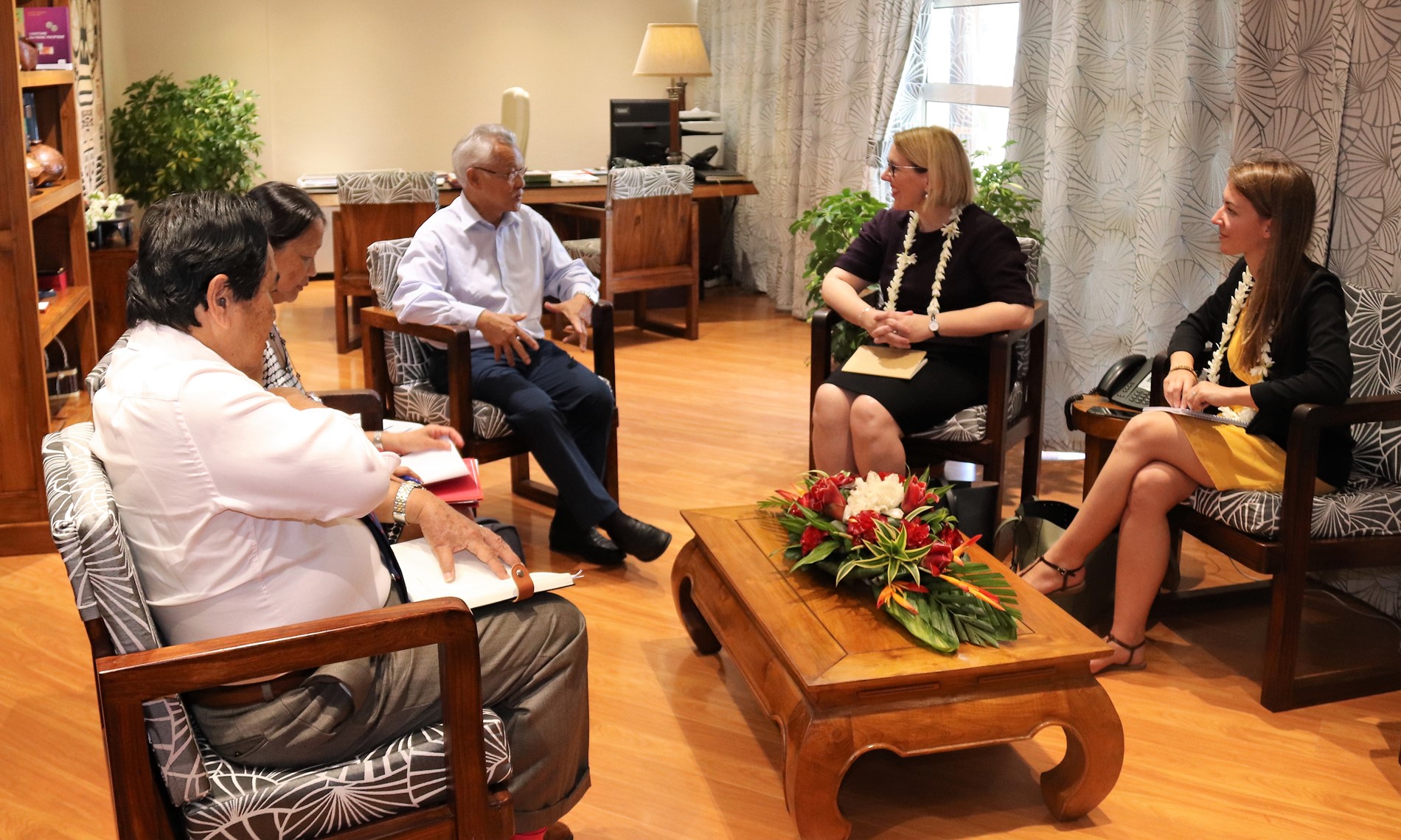 Lors de cet entretien, M. Gaston TONG SANG a tout d’abord tenu à adresser à Mme CARRINGTON ses félicitations pour sa nomination et ses remerciements pour sa venue en Polynésie française.