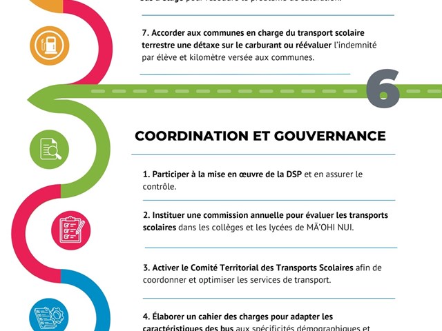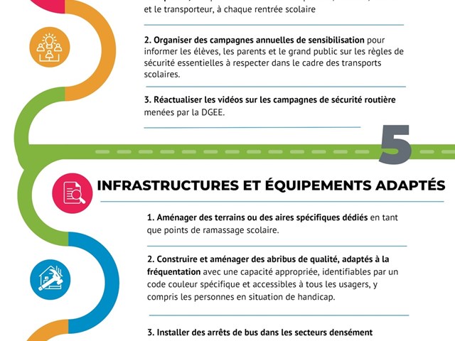 - Une meilleure coordination et gouvernance du transport scolaire terrestre.