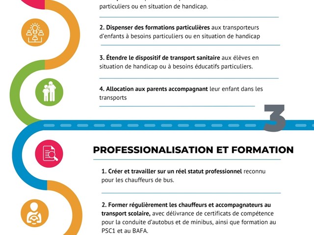 - La professionnalisation et la formation du personnel encadrant le transport scolaire ;