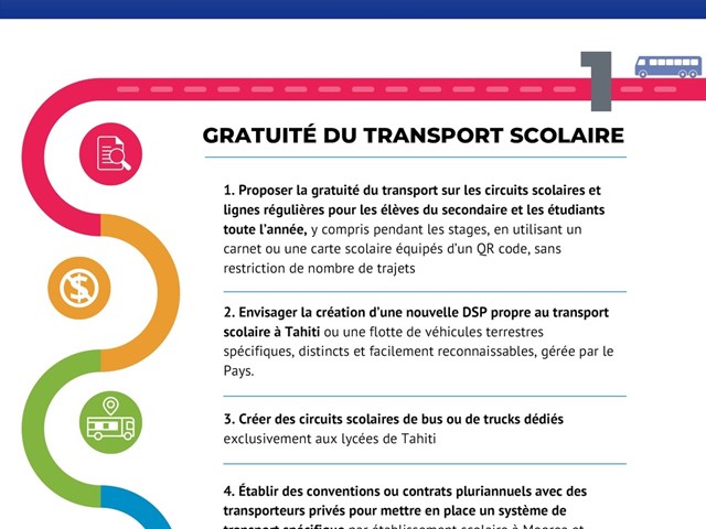 Au terme de ses travaux, la mission d’information a formulé 45 préconisations visant à optimiser ce service essentiel pour garantir un transport sûr et efficace pour tous les élèves de Polynésie française, soulignant l’engagement envers l'éducation et l'équité.