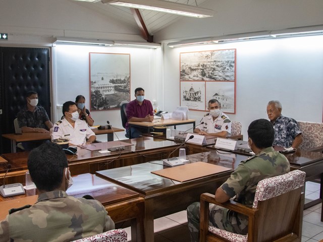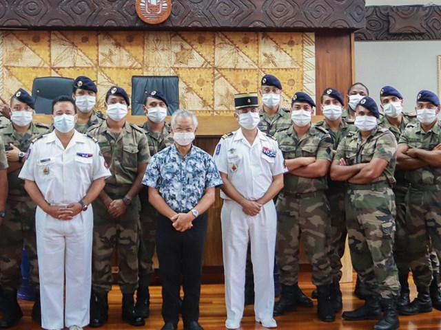 Préalablement à la signature de la convention, treize élèves du RSMA-Pf et plusieurs encadrants ont été reçus dans le hall René LEBOUCHER et ont visité les lieux, notamment les salles des commissions Sonia AGNIERAY-THUNOT et John FRENCH TEARIKI ainsi que l’hémicycle et les jardins de la Reine Pomare IV.