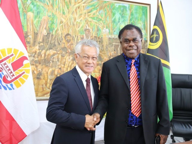 Après quatre jours de mission parlementaire en République du Vanuatu, et à quelques heures de son retour en Polynésie française, le président de l’assemblée de la Polynésie française a signé jeudi matin avec le président du Parlement de la République du Vanuatu, l’Honorable Esmon SAIMON, le programme de coopération fixant les actions partenariales des deux assemblées pour 2019-2020.