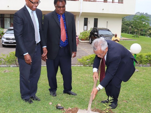 Cette réunion de travail s’est achevée par la mise en terre, dans les jardins du Parlement, de deux santaliers, arbre très répandu au Vanuatu, symbolisant la croissance fertile des relations nouées par les deux institutions et leur enracinement commun aux valeurs de partage, de fraternité et de solidarité océaniennes.