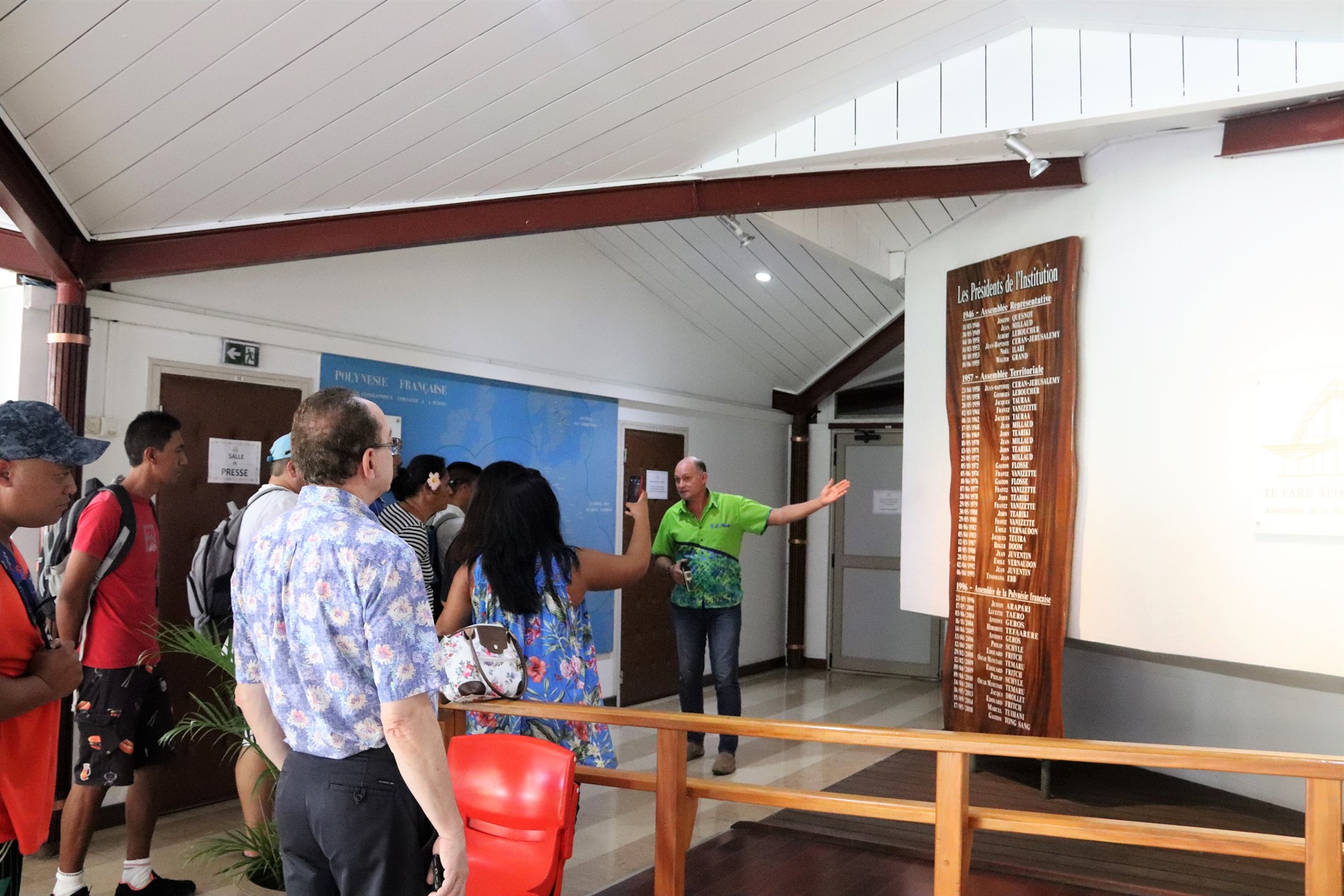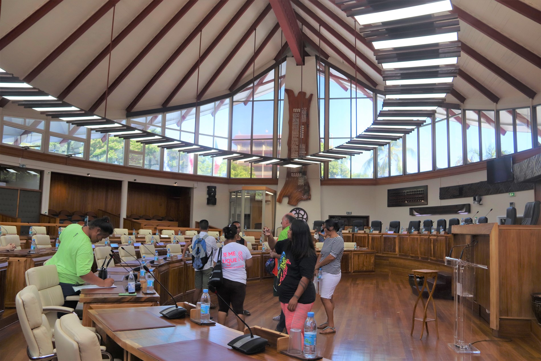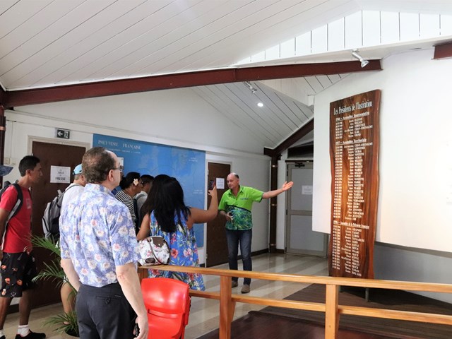 Le groupe a effectué cette visite dans le cadre du module « institutions » qui figure dans le programme de leur formation. Ainsi ils ont pu admirer le hall René LEBOUCHER en prenant connaissance des noms des présidents qui ont siégé à l’assemblée depuis 1946 puis des 57 représentants en poste aujourd’hui. Par la suite ils ont accédé à la salle Sonia AGNIERAY THUNOT où ils ont pu comprendre le fonctionnement d’une commission législative puis des séances plénières lorsqu’ils sont entrés dans l’hémicycle. La visite s’est terminée dans les jardins de la Reine Pomare IV, où les stagiaires ont été émerveillés par la beauté et l’histoire des lieux.
