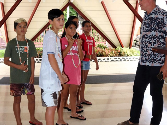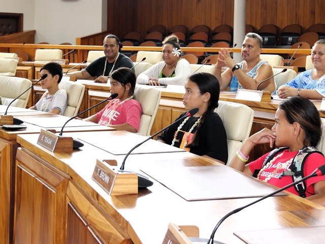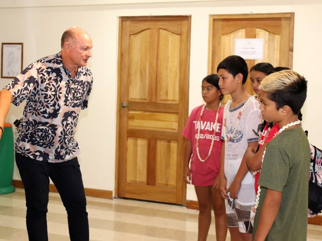 Cinq élèves de l’école primaire MAPUTEOA et du collège Saint Raphaël de Rikitea, avec leurs professeures MM. MARAIAURIA Torea et PETERANO Ani ont été reçus à l’assemblée de la Polynésie française pour une visite guidée de l’institution.