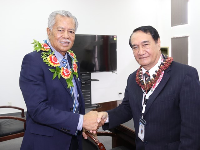 With the Secretary-General of the Pacific Islands Forum (PIF), His Excellency Henry PUNA, Mr. GEROS discussed the upcoming PIF meeting to be held in the Cook Islands in October and reiterated his strong commitment to ocean protection and environmental conservation. They also addressed current concerns of PIF member countries and emphasized the importance of closer collaboration between the PIF and the PIPG to ensure that national and regional actions complement each other.