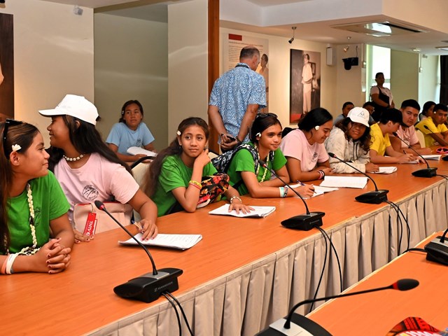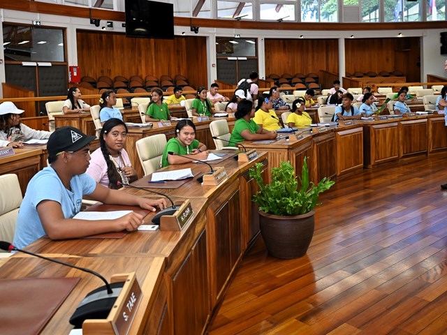 Les écoliers ont ensuite été conduits dans la salle des commissions John French Teariki, puis dans l’hémicycle Vetea Bambridge, où ils ont pu en apprendre davantage sur le processus d’adoption d’un texte.