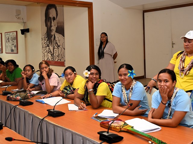 Ce vendredi 21 février 2025, des jeunes de classe de 3e au collège de Makemo et 4 accompagnateurs ont visité l'Assemblée de la Polynésie française.