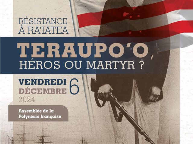 Sous l’impulsion de son président, Antony GEROS, l’Assemblée de la Polynésie française organise, le vendredi 6 décembre 2024, un événement intitulé « Résistance à Raiatea - Teraupo’o, héros ou martyr ? ». Cet événement vise à mettre en lumière les faits marquants de la résistance dans les Îles Sous-le-Vent face à l’annexion française, tout en explorant le rôle historique du chef Teraupo’o, figure centrale de cette période.