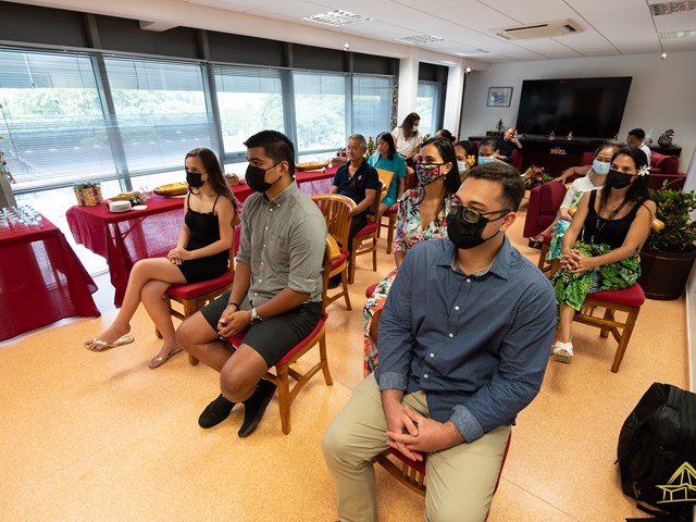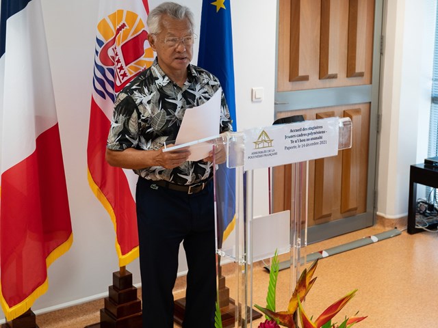 Le président Gaston TONG SANG a reçu mardi 14 décembre 2021, à l’occasion d’une cérémonie d’accueil organisée à l’assemblée de la Polynésie française, les 5 étudiants sélectionnés afin de bénéficier du dispositif « Jeunes cadres polynésiens – Te u’i hou no ananahi ». Le président était accompagné lors de cette cérémonie de Mme Teura IRITI et M. Charles FONG LOI, tuteurs de stage et présidents de commissions législatives de l’assemblée, du secrétaire général et de chefs de service de l’institution.
