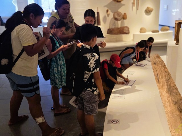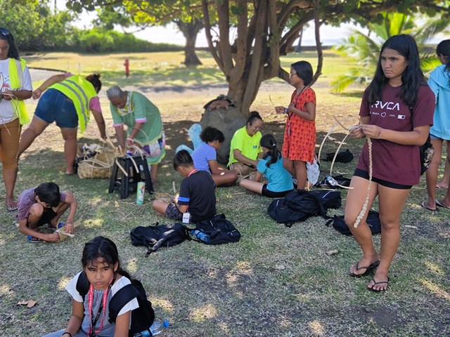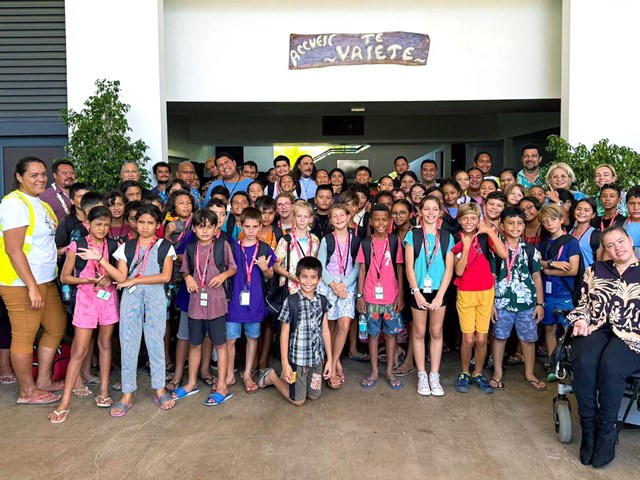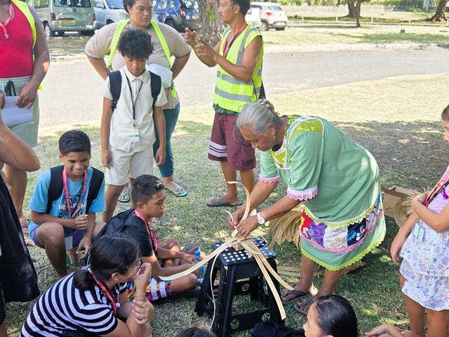 La journée s’est poursuivie par une immersion pédagogique au Musée de Tahiti et des Îles – Te Fare Iamanaha où les élèves ont pu approfondir leurs connaissances du patrimoine culturel polynésien tout en s’initiant au tressage traditionnel d’un panier en pandanus.