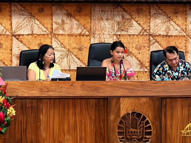 Dès neuf heures, la séance a été ouverte sous la présidence de Mlle Teheiti DECLINE-LUCAS, élue la veille présidente de l’Assemblée des représentants juniors. Après avoir salué l’assemblée, la jeune présidente a invité ses camarades à poursuivre les travaux engagés en commission.