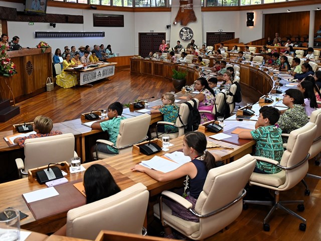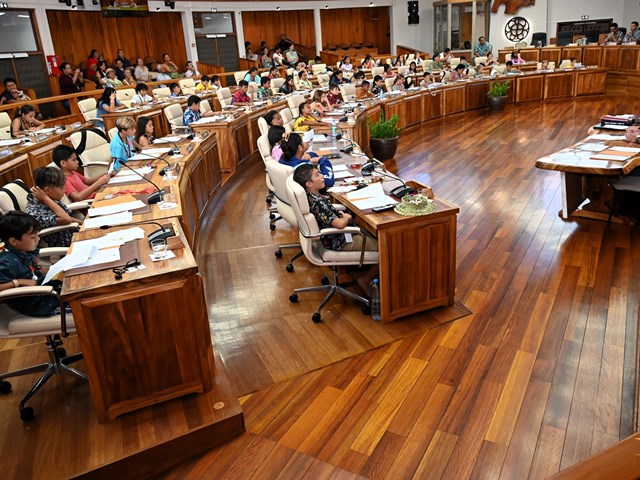 En ouverture de séance, une question orale a été posée par un élu junior, M. Arrihaunui ROTA, à l’attention de M. Ronny TERIIPAIA, ministre de l’Éducation, représenté à cette occasion par M. Oraihoomana TEURURAI, ministre du Foncier et du Logement. Ce dernier a répondu avec bienveillance, valorisant la curiosité et la conscience citoyenne des élèves.
