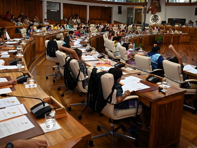 Ce jeudi 3 avril 2025, les représentants juniors de la Polynésie française se sont réunis dans l’hémicycle de l’Assemblée pour la seconde journée de leurs travaux délibératifs.