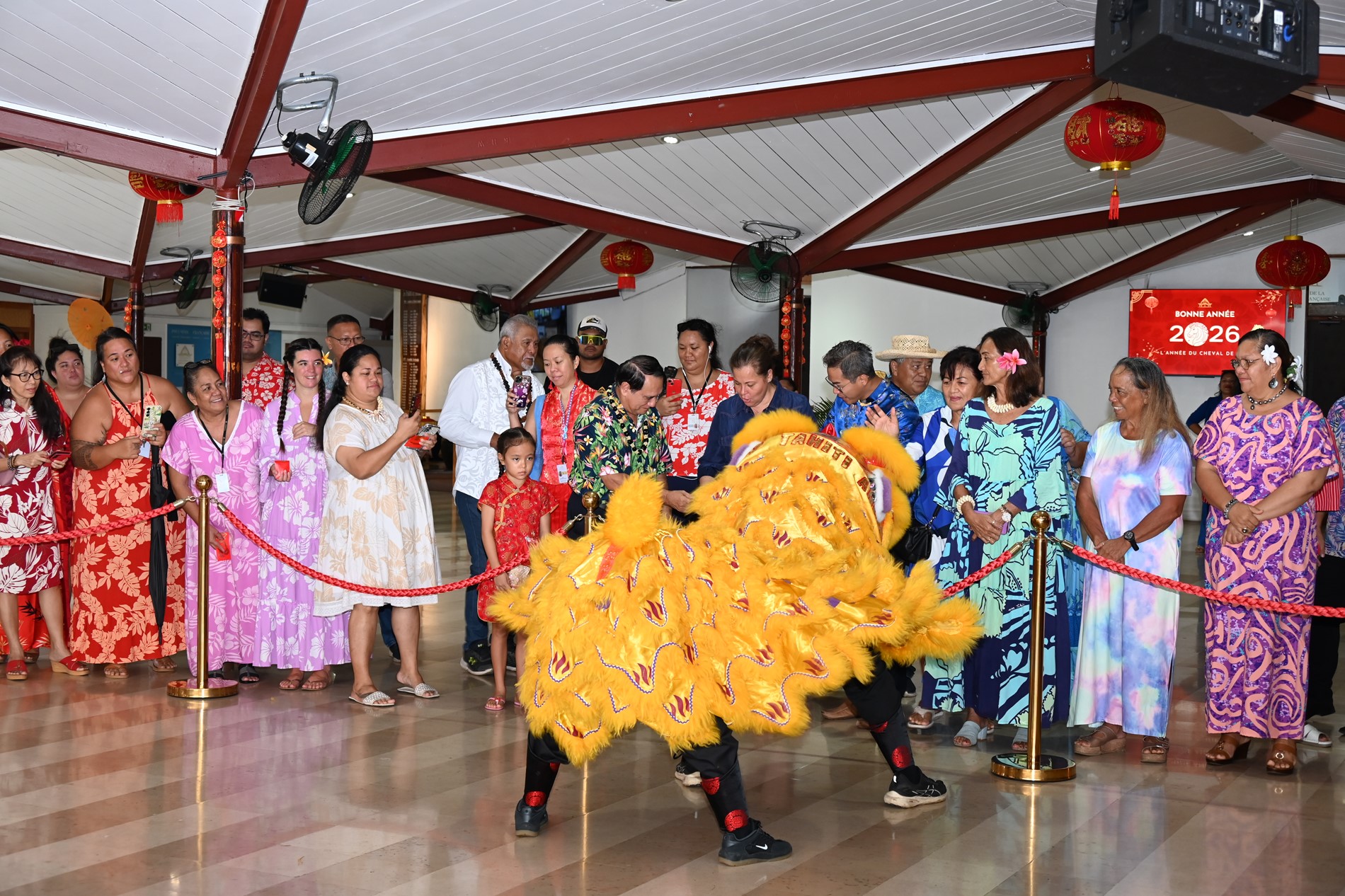 Ce jeudi 19 février 2026, le Président de l’Assemblée de la Polynésie française, M. Antony GEROS, accompagné de plusieurs membres de l’institution, a assisté à la danse du lion organisée dans le cadre des festivités du Nouvel An chinois, placé sous le signe du Cheval de feu.