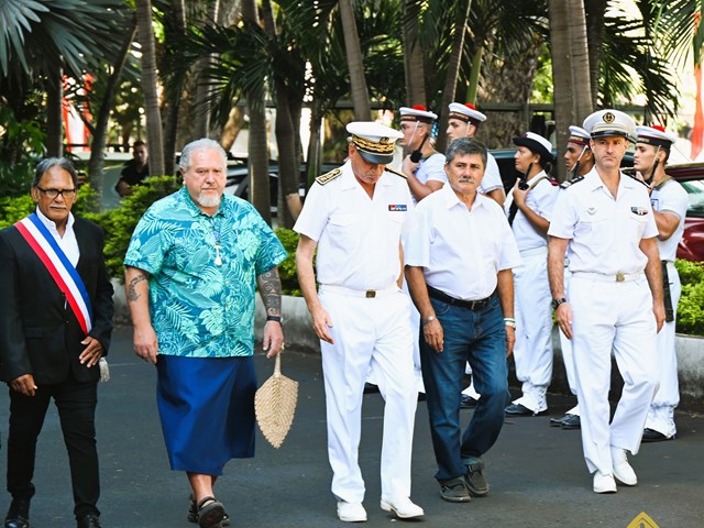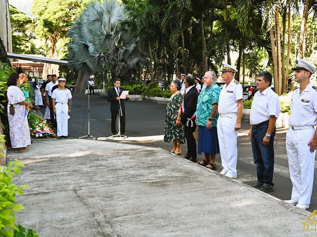 Présidée par M. Eric SPITZ, Haut-commissaire, cette cérémonie s'est déroulée en présence de M. Moetai BROTHERSON, Président de la Polynésie française, M. Marcellino TEATA, représentant le maire de la commune de Papeete et Mme Voltina ROOMATAAROA-DAUPHIN, présidente du CESEC.
