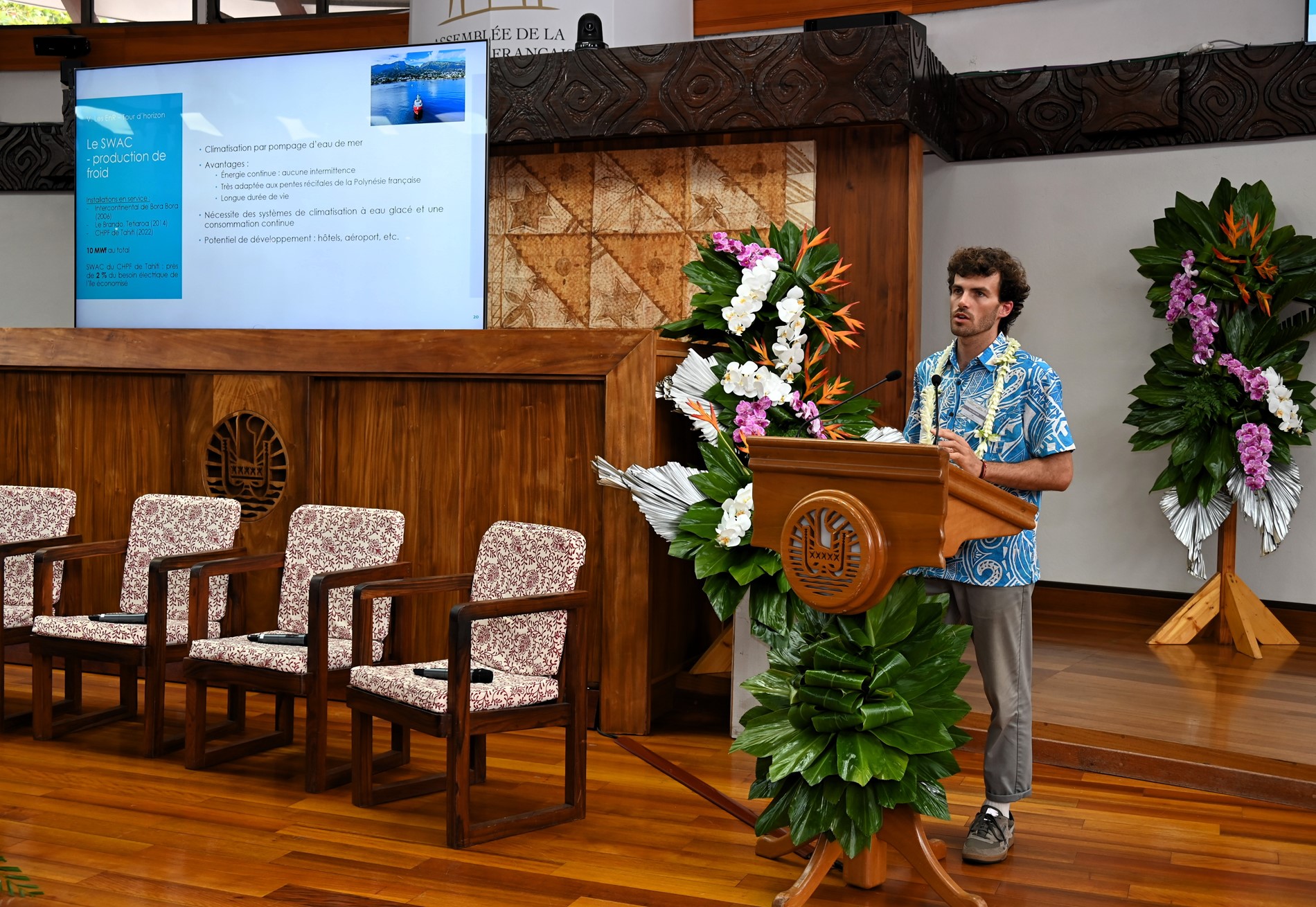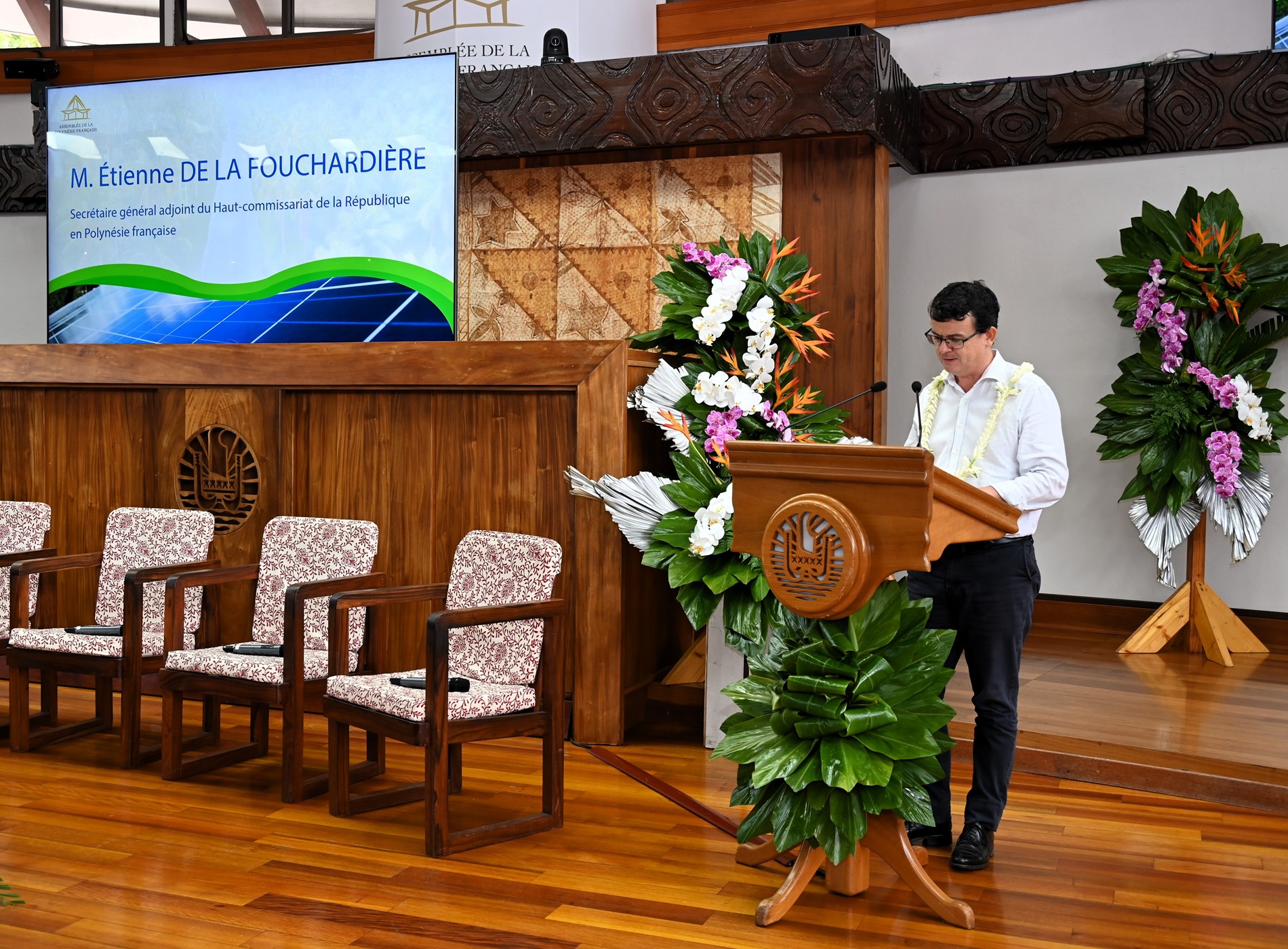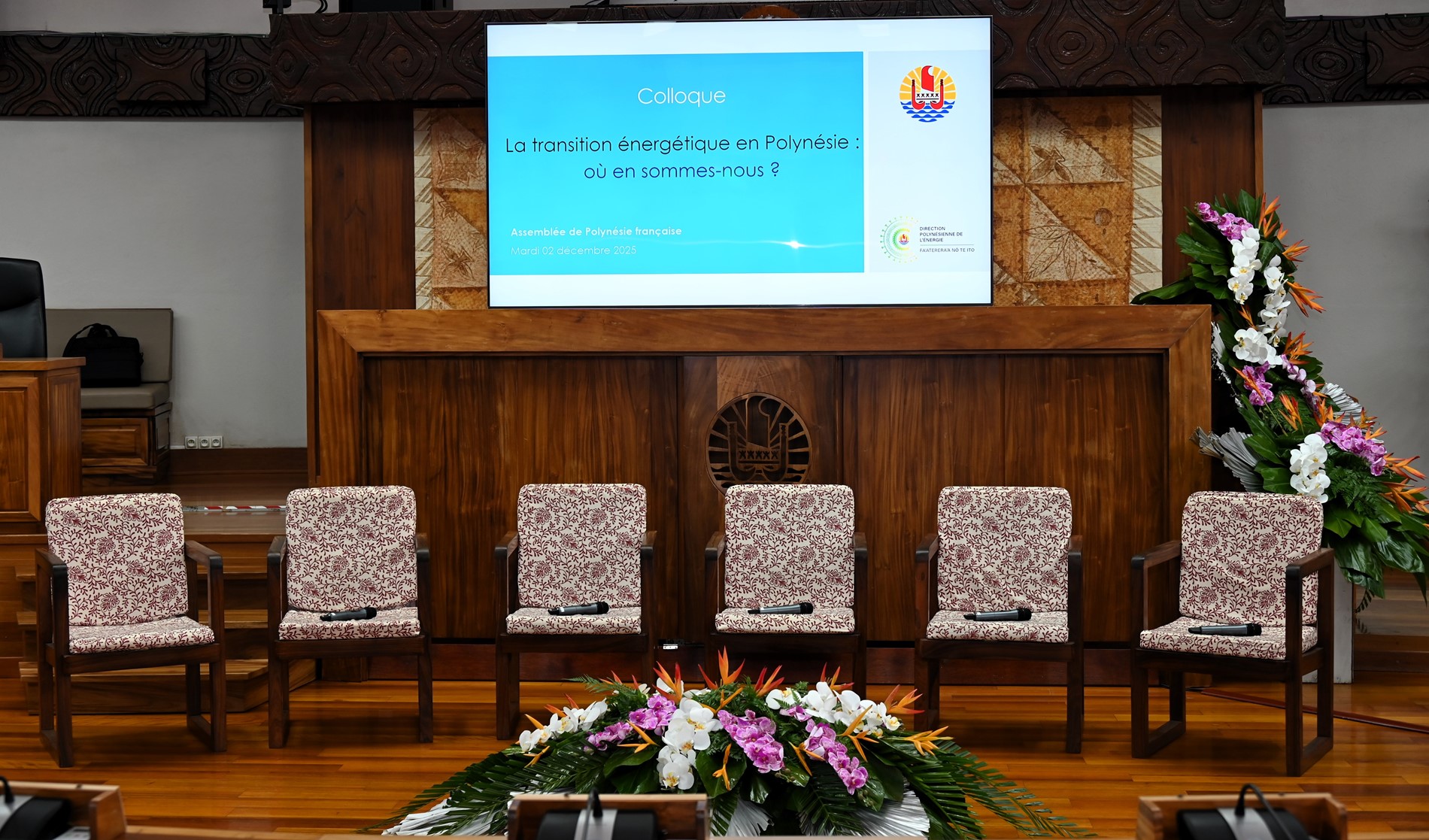 Dans son allocution d’ouverture, M. Antony GEROS, président de l’Assemblée, a rappelé que la transition énergétique constitue un enjeu majeur pour la souveraineté économique et environnementale du Pays, soulignant que la forte dépendance aux hydrocarbures représente une dépense annuelle importante qui pèse sur la balance commerciale. M. Warren DEXTER, ministre de l’Économie, du Budget et des Finances en charge des énergies, ainsi que M. Étienne DE LA FOUCHARDIÈRE, représentant le Haut-commissaire, ont également insisté sur l’importance stratégique de cette transition pour l’autonomie, la sécurité et le développement durable de la Polynésie française.