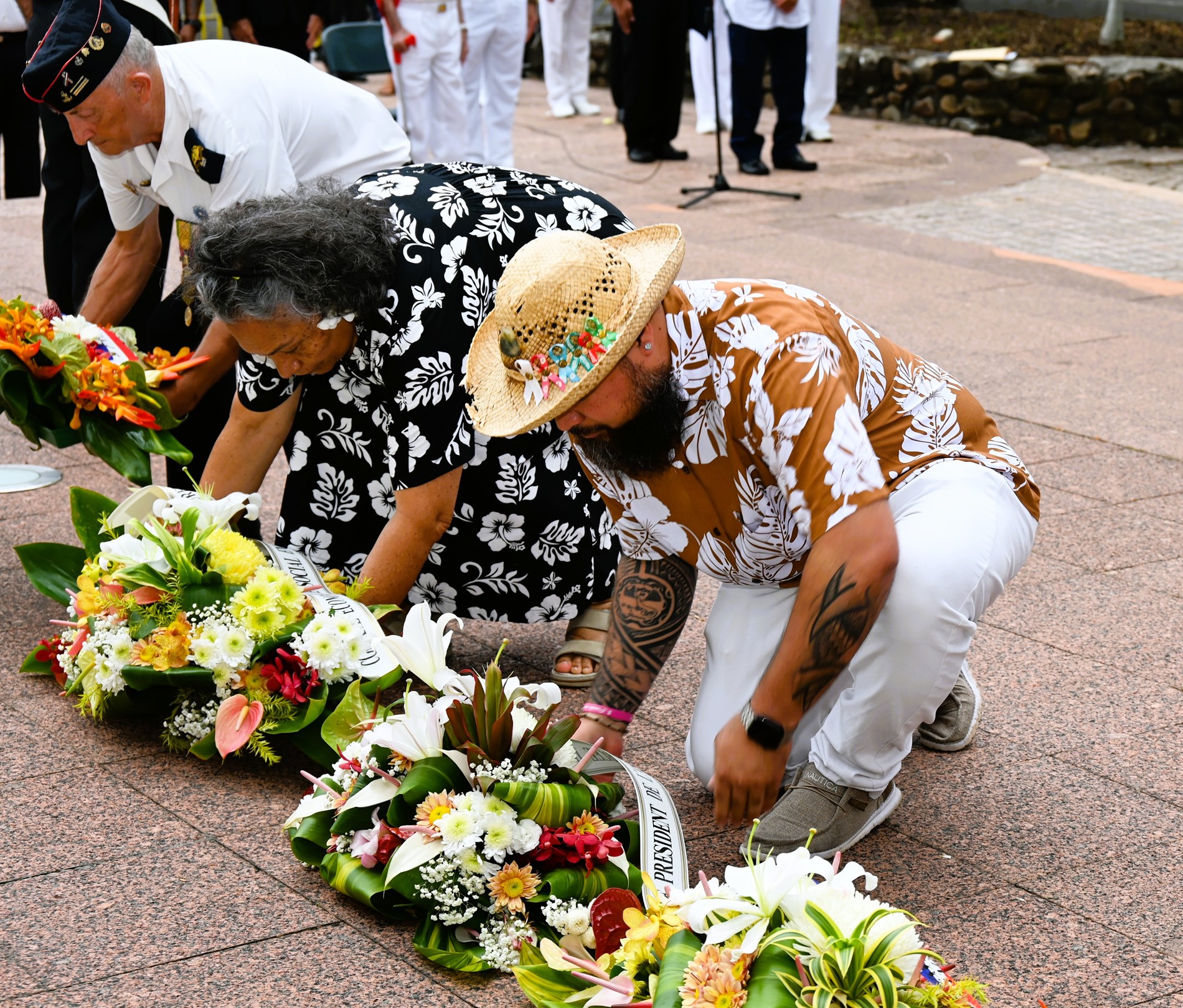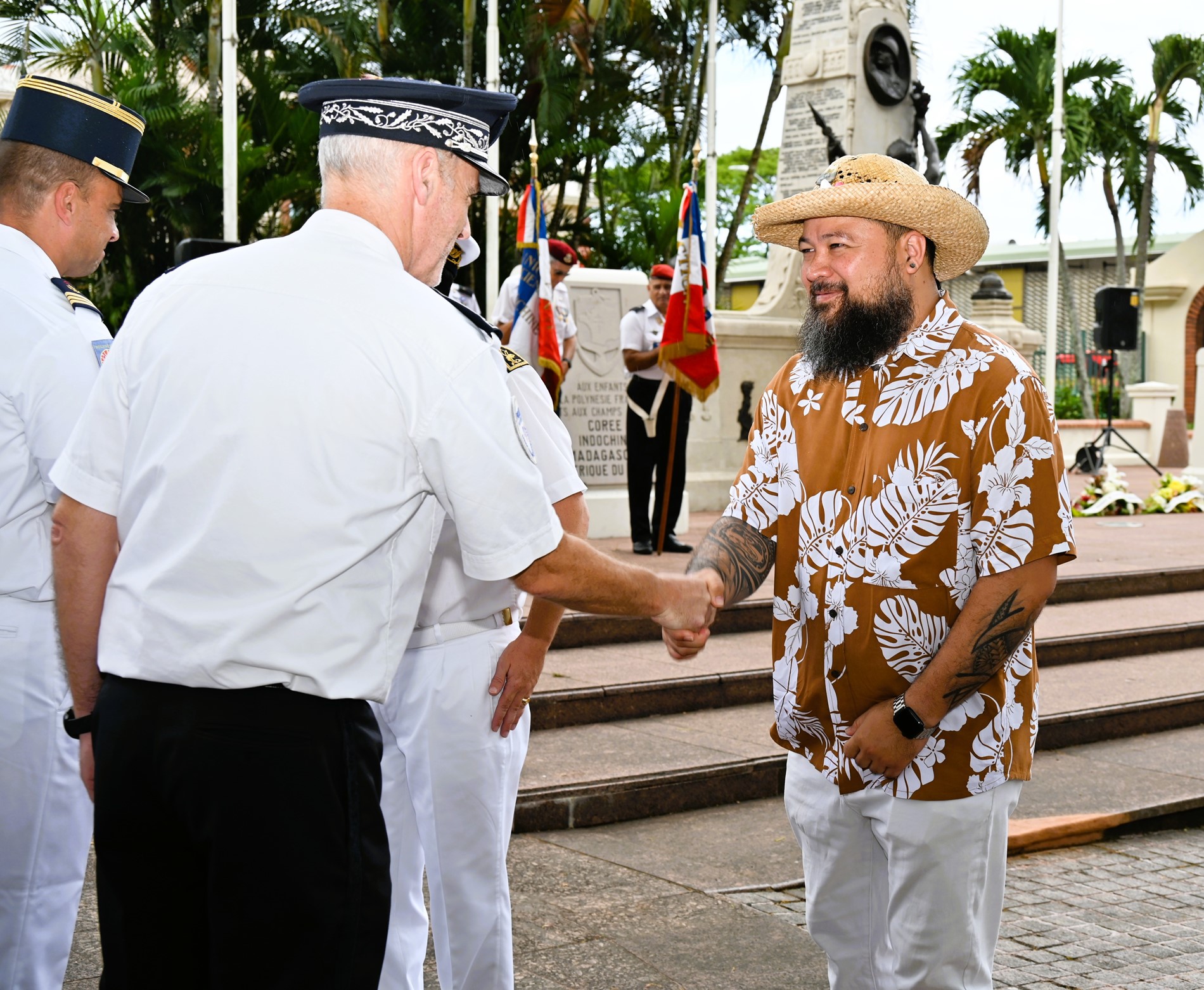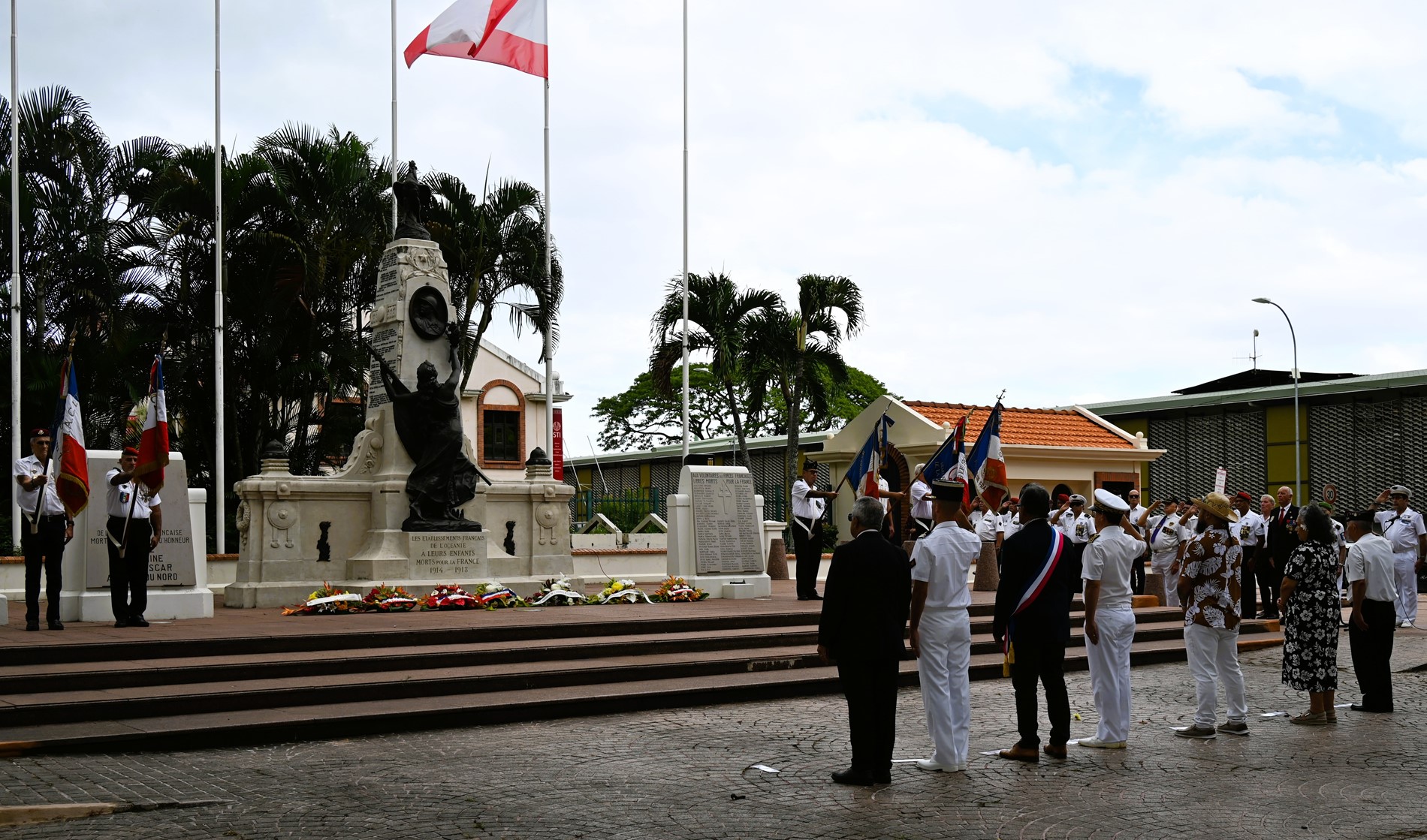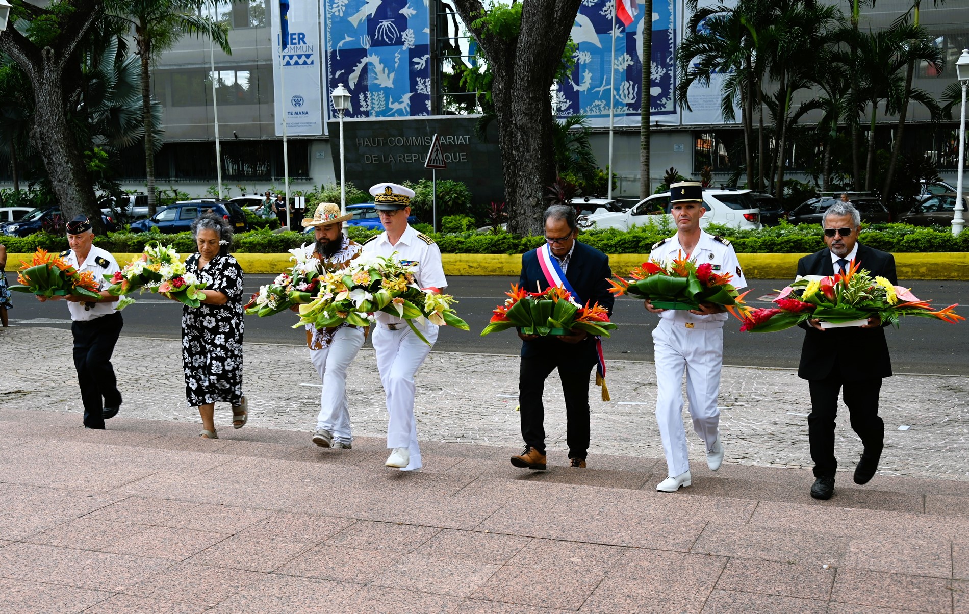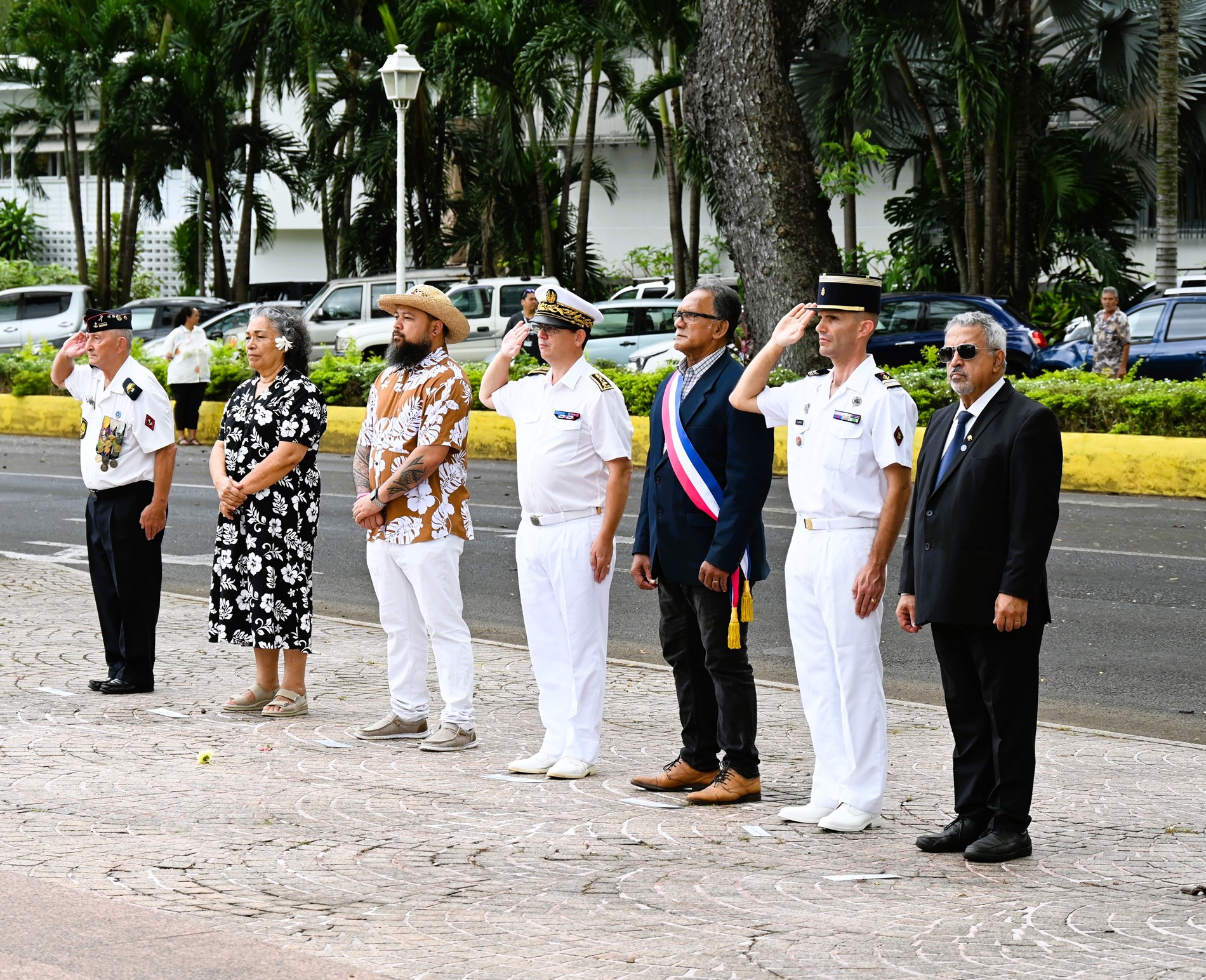 Cette cérémonie s'est déroulée en présence de M. Etienne DE LA FOUCHARDIÈRE, secrétaire général adjoint, représentant le Haut-commissaire de la République, de Mme Voltina ROOMATAAROA-DAUPHIN , vice-présidente du CESEC, de M. Marcelino TEATA, adjoint au maire de la ville de Papeete, de M. Joseph MAROUN, consul du Liban en Polynésie française, et de M. Yann LAFORTUNE, président de la Fédération Nationale des Anciens des Missions Extérieures FNAME – OPEX Polynésie.