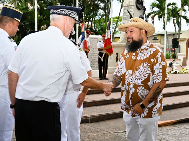 Cette cérémonie s'est déroulée en présence de M. Etienne DE LA FOUCHARDIÈRE, secrétaire général adjoint, représentant le Haut-commissaire de la République, de Mme Voltina ROOMATAAROA-DAUPHIN , vice-présidente du CESEC, de M. Marcelino TEATA, adjoint au maire de la ville de Papeete, de M. Joseph MAROUN, consul du Liban en Polynésie française, et de M. Yann LAFORTUNE, président de la Fédération Nationale des Anciens des Missions Extérieures FNAME – OPEX Polynésie.