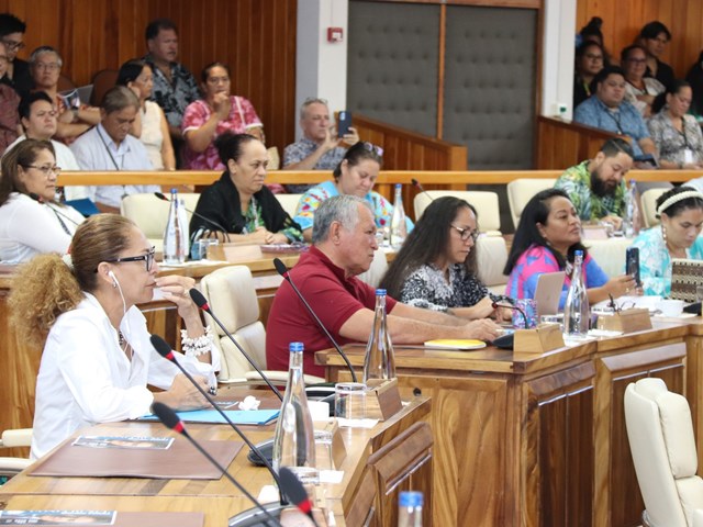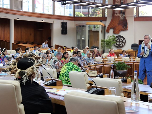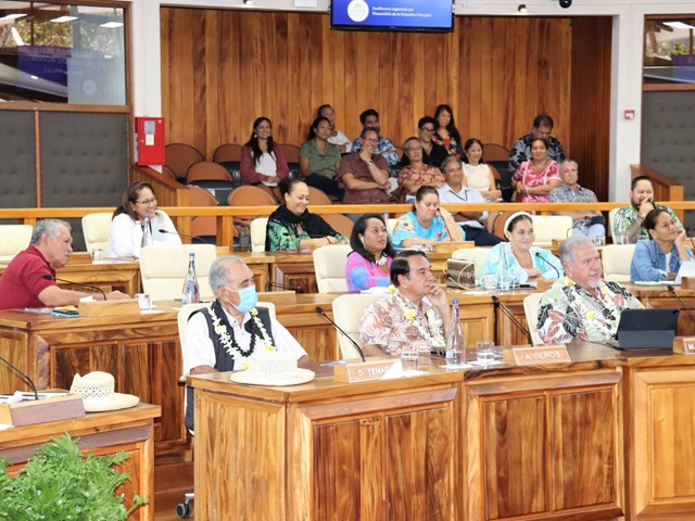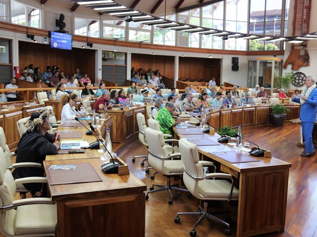 L’assemblée de la Polynésie française organisait ce jeudi 31 août 2023 dans son hémicycle, une conférence sur l’Economie Bleue et l’Economie du Bonheur animée par M. Gunter PAULI, économiste, entrepreneur et auteur, à laquelle ont participé le président de l’assemblée M. Antony GEROS, le Président de la Polynésie française M. Moetai BROTHERSON, la première vice-présidente du Pays Mme Eliane TEVAHTUA, les ministres Mme Vanina CROLAS et M. Taivini TEAI ainsi qu’une trentaine de représentants à l’assemblée et plusieurs cadres et collaborateurs de l’institution.