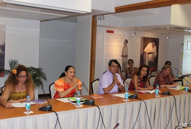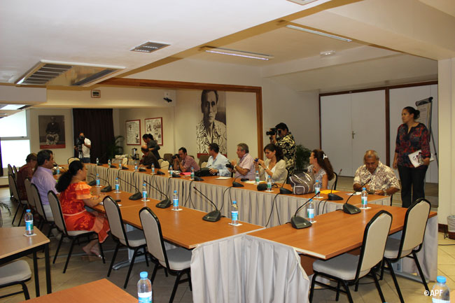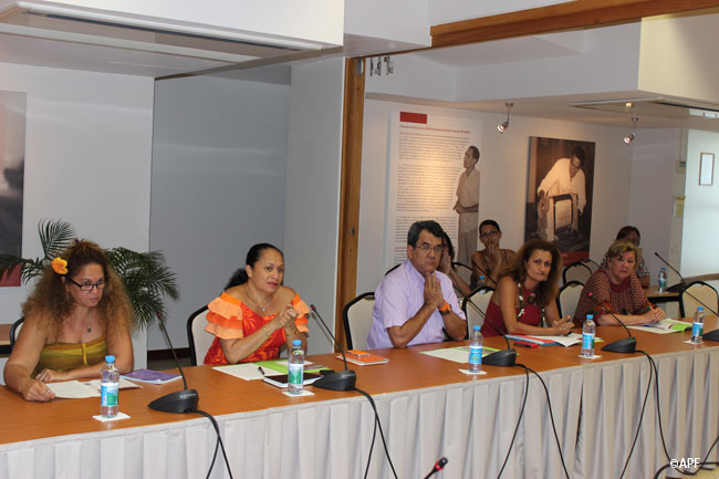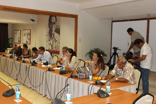 M. Édouard FRITCH et Mme Sandra MANUTAHI LEVY-AGAMY accompagnés de plusieurs représentantes à l’assemblée ont présenté ce matin à la presse, le programme de la matinée du 27 septembre, concernant les conférences débats ayant pour thème : « la Polynésie face à la question du PACS : enjeux collectifs et personnels pour les élus ».