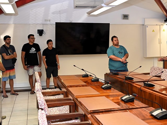 Dans le cadre de leur formation en droit du travail, les étudiants ont pu apprendre davantage sur le parcours d’une loi de pays en se rendant dans la salle des commissions Sonia AGNIERAY-THUNOT, dédiée à la préparation des textes législatifs, lesquels sont votés dans l’hémicycle Vetea BAMBRIDGE.