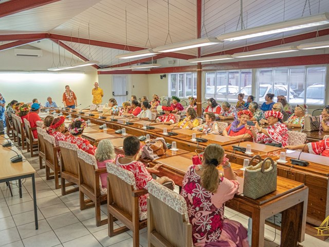 Le lundi 6 mars 2023, une cinquantaine de personnes âgées d'associations de matahiapo de Papeete et Faaa ont découvert l'assemblée de la Polynésie française à l'occasion d'une visite guidée des locaux et espaces de l'institution.