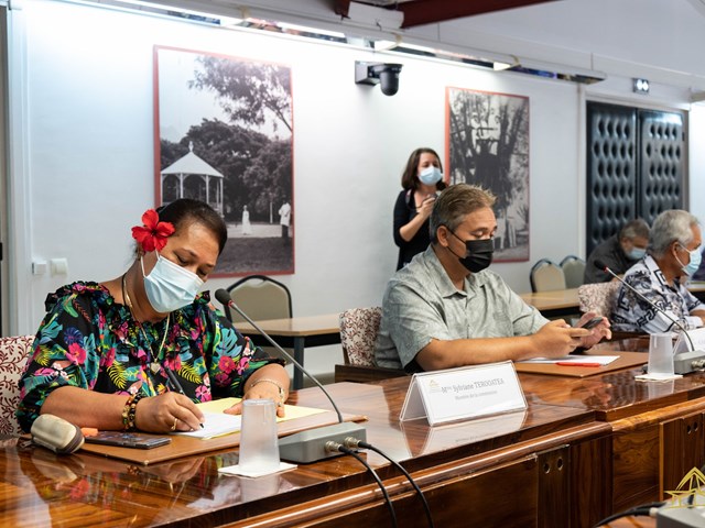 Les élus ont d’abord étudié le projet d’avis sur le projet d’ordonnance portant réforme des règles de publicité, d’entrée en vigueur et de conservation des actes pris par les collectivités territoriales et leurs groupements. Ce texte a été présenté au nom de la commission par Mme Sylvana PUHETINI, et a été défendu par M. Dominique BARKAT, chef du bureau du contrôle de légalité de la Direction de la réglementation et des affaires juridiques du haut-commissariat de la République en Polynésie française, Mme Lisa JUVENTIN, chef du service de la Délégation pour le développement des communes de la Polynésie française (DDC) et Mme Reva TETUANUI, juriste au SPCPF.