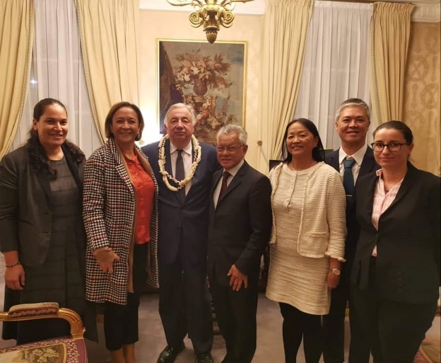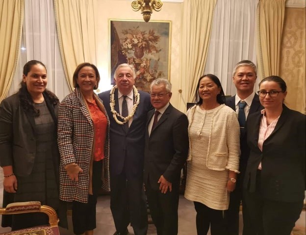 Le Président de l’assemblée de la Polynésie française Gaston TONG SANG a rencontré ce mercredi 20 novembre 2019, le Président du Sénat Gérard LARCHER. Il était accompagné de Mme la sénatrice Lana TETUANUI et d’une délégation de fonctionnaires de l’assemblée composée de Mme Jeanne SANTINI, secrétaire générale, Mme Mareva MERCIER, chef du service administratif et financier, Mme Rumia ATAI, chef du service de la communication, du protocole et de la sécurité et M. Philippe AT-SE, chef du service informatique et des systèmes d’information, actuellement en déplacement à Paris afin de participer à une série de réunions de travail à l’Assemblée nationale et au Sénat s’inscrivant dans le cadre du partenariat liant les trois assemblées parlementaires.