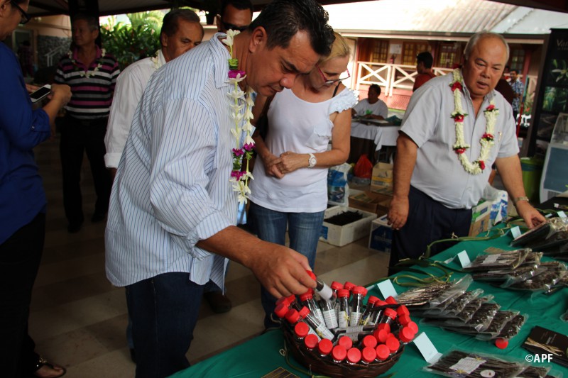 Mardi 16 juin 2015, en présence du ministre de l’agriculture, de l’artisanat et du développement des archipels M. Frédéric RIVETA, ainsi que de nombreux représentants à l’assemblée, de Mme ELLACOTT HAMBLIN, représentante du CESC, de Mme Carine VAIRAAROA, Directrice de l’EPIC Vanille de Tahiti et du public venu nombreux, le président de l’assemblée a inauguré la huitième édition de la Semaine de la Vanille de Tahiti, qui se déroule dans le hall René LEBOUCHER à l’assemblée de la Polynésie française du 16 au 20 juin prochain.