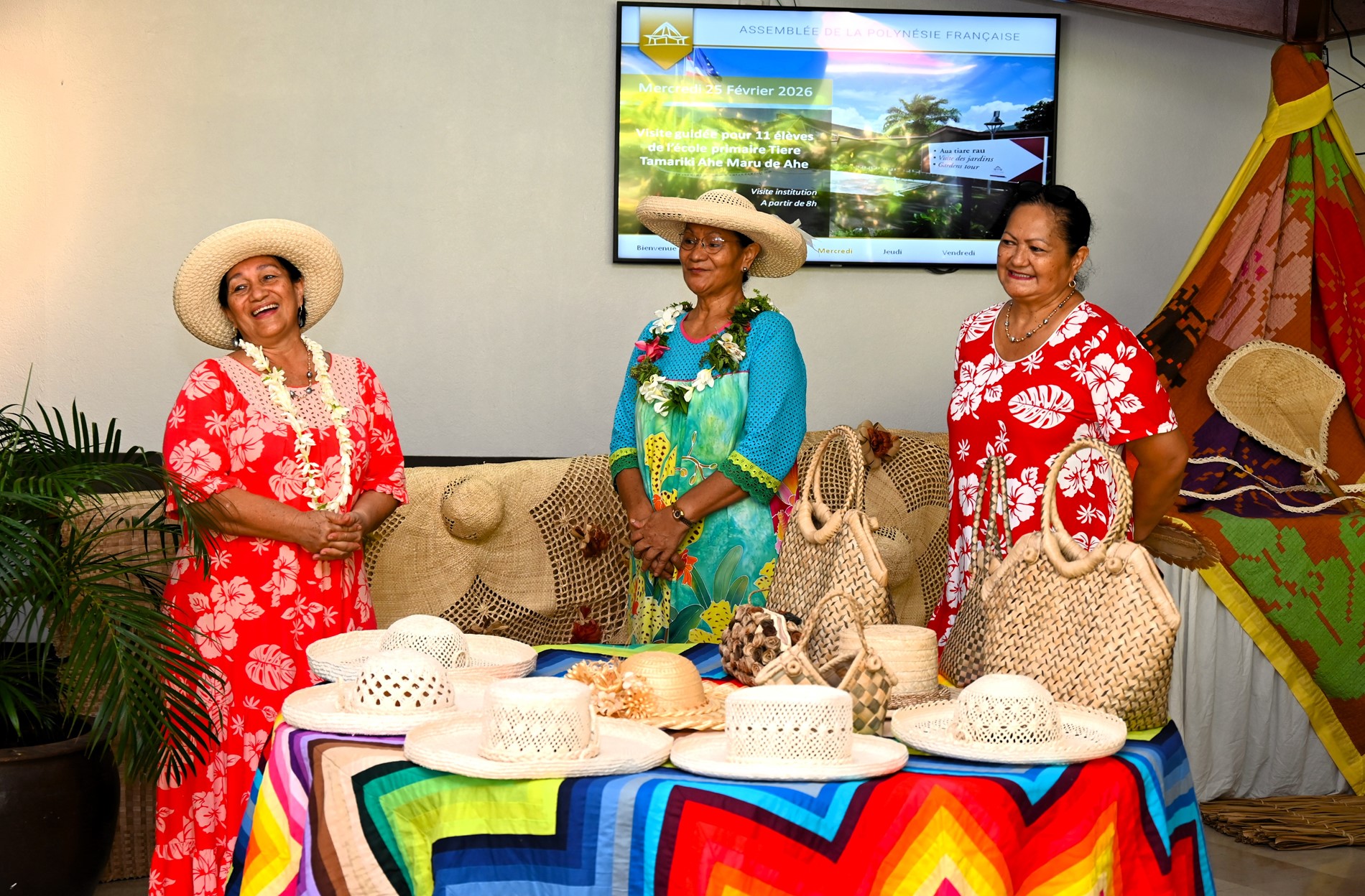À l’occasion de l’inauguration du salon artisanal Te Rara’a, les représentants de l’Assemblée se sont réunis dans le hall René LEBOUCHER, en présence de Mme Tahia BROWN, présidente de la commission du contrôle budgétaire et financier et de ses membres, en parallèle de la réunion de la commission, ce lundi 23 février 2026.