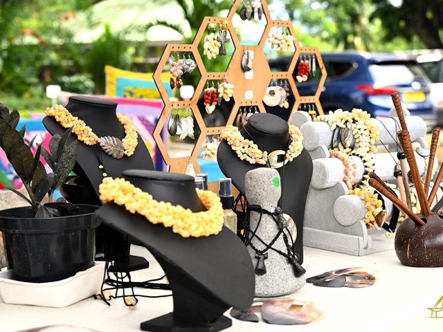 Sous le thème "Te Vahine e Riro Mai e Roti – Octobre Rose", cet événement rassemble une trentaine d'artisans qui exposent des créations variées : bijoux en nacre, vannerie, prêt-à-porter, peinture sur verre, sculptures en bois.