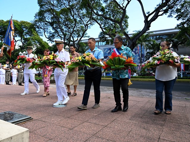 La cérémonie a été présidée par M. Jean-Michel DELVERT, Secrétaire général du Haut-commissariat de la République en Polynésie française, en présence des autorités locales et nationales, des représentants civils et militaires, ainsi que des associations d’anciens combattants.