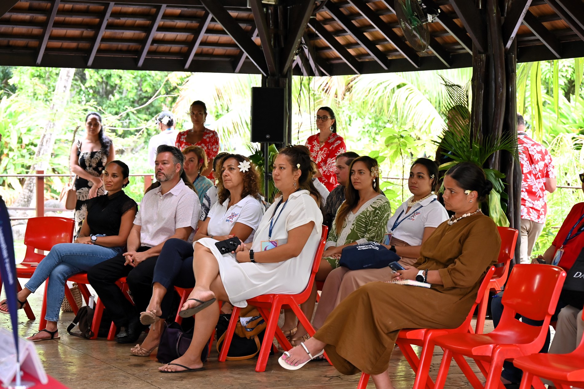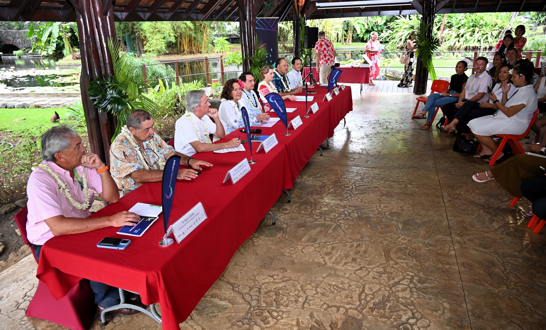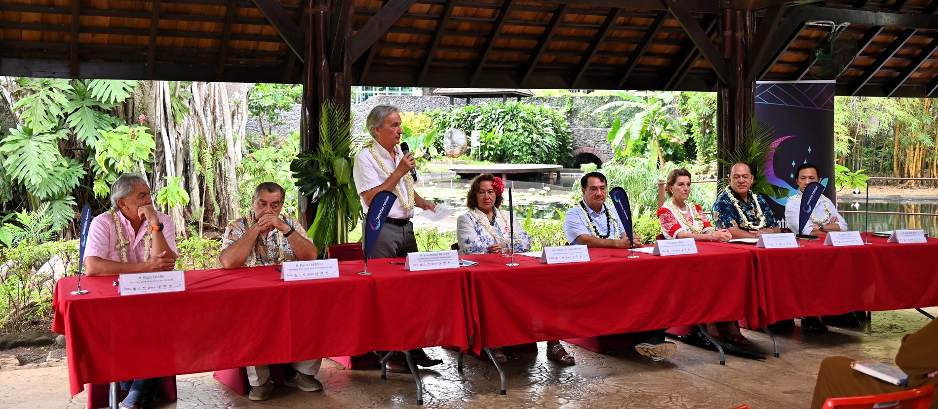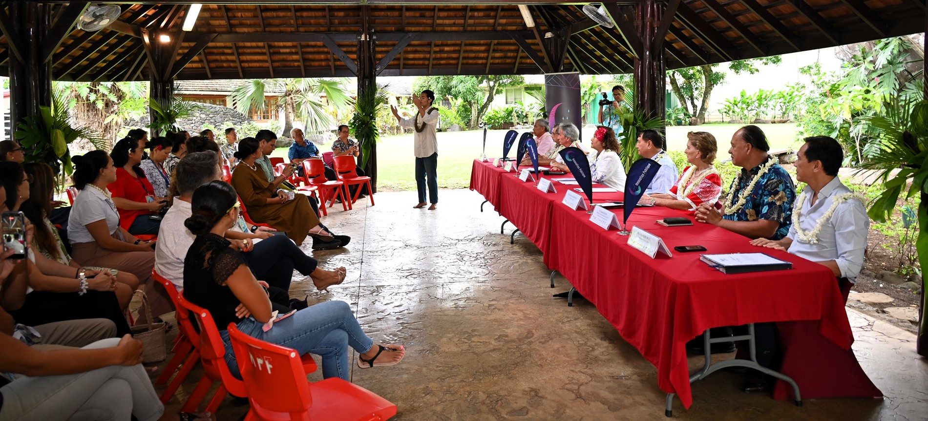 La cérémonie d’ouverture s’est déroulée dans les jardins de la Reine Pomare IV. Elle a débuté par un ‘ōrero d’accueil, suivi des allocutions de M. Antony GEROS, Président de l’Assemblée, Mme Minarii GALENON TAUPUA, vice-présidente de la Polynésie française et M. Jean-Michel DELVERT, secrétaire général du Haut-commissariat de la République en Polynésie française.