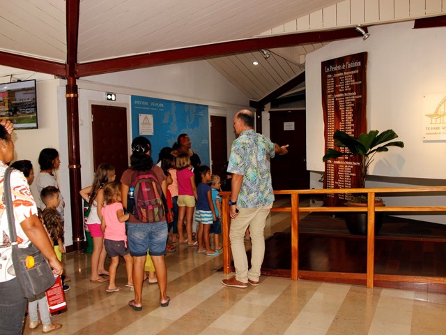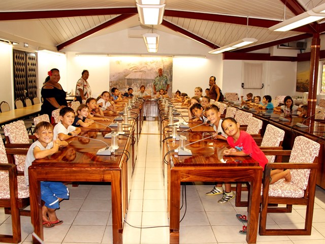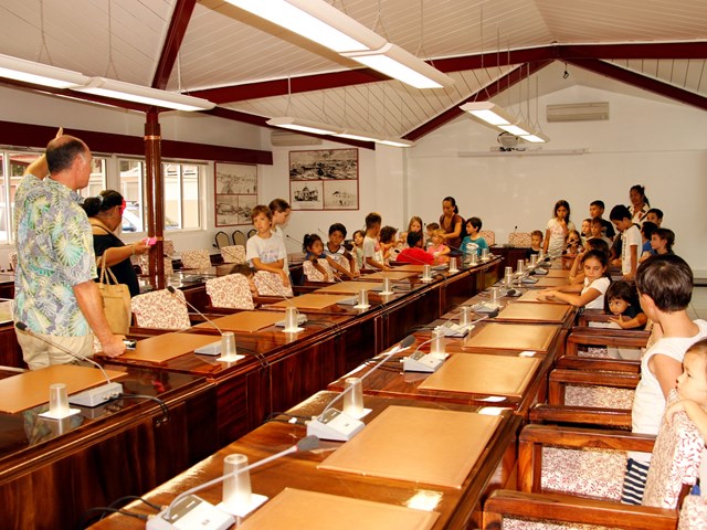 Ils ont pu pénétrer dans la salle John French TEARIKI, puis dans la salle Sonia AGNIERAY-THUNOT avant de découvrir l’hémicycle qui a, une fois encore, impressionné par sa taille et l’ambiance solennelle qui s’y trouve. Les enfants ont pu, l’espace d’un instant, se prêter au jeu des politiciens dans la grande salle boisée.