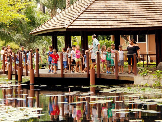 La visite se termina près du bassin de la reine Pomare IV, où les canards et anguilles présents ont fait quelques apparitions pour leur plus grand plaisir.