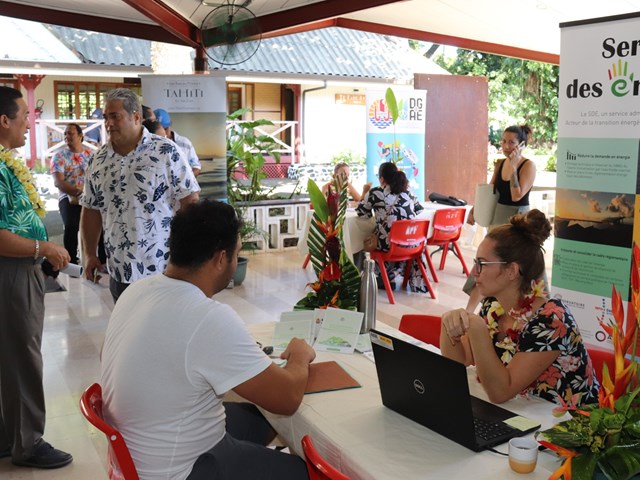 Des stands d’informations étaient ainsi tenus par le service du Tourisme, le Service Des Énergies, l'Agence de Développement Économique, la Direction Générale des Affaires Économiques, la Direction Polynésienne des Affaires Maritimes, la Direction de la Jeunesse et des Sports, l’Institut de la Jeunesse et des Sports, la Chambre de Commerce, d’Industrie, des Services et des Métiers, PRISM - l‘incubateur de startups polynésiennes, l’Agence De l’Environnement et de la Maîtrise de l’Énergie (ADEME), la Société de Financement du Développement de la Polynésie française, Invest in Pacific, le réseau Initiative Polynésie française et la Fédération des Associations de Protection de l'Environnement - Te Ora Naho.