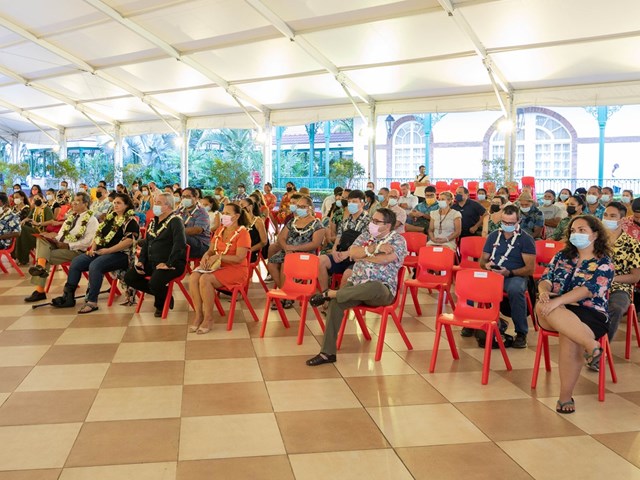 Mme Sylvana PUHETINI, première vice-présidente de l’assemblée de la Polynésie française, a participé à la remise des diplômes des élèves du Centre des Métiers d’art de la Polynésie française (CMAPf) sous le chapiteau de la Présidence ce jeudi 8 juillet 2021, aux côtés de M. Edouard FRITCH, Président de la Polynésie française, de M. Viri TAIMANA, directeur du CMAPf, de membres du gouvernements, de professeurs du CMAPf, de parents d’élèves et de personnalités du Pays.