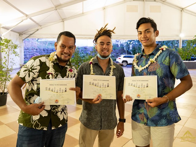 Lors de cette cérémonie, 14 lauréats ont été récompensés, dont 5 ayant obtenu le certificat polynésien des métiers d’arts (CPMA) équivalent au certificat d’aptitude professionnel (CAP) et 9 ayant reçu le brevet polynésien des métiers d’arts (BPMA) équivalent au baccalauréat professionnel.